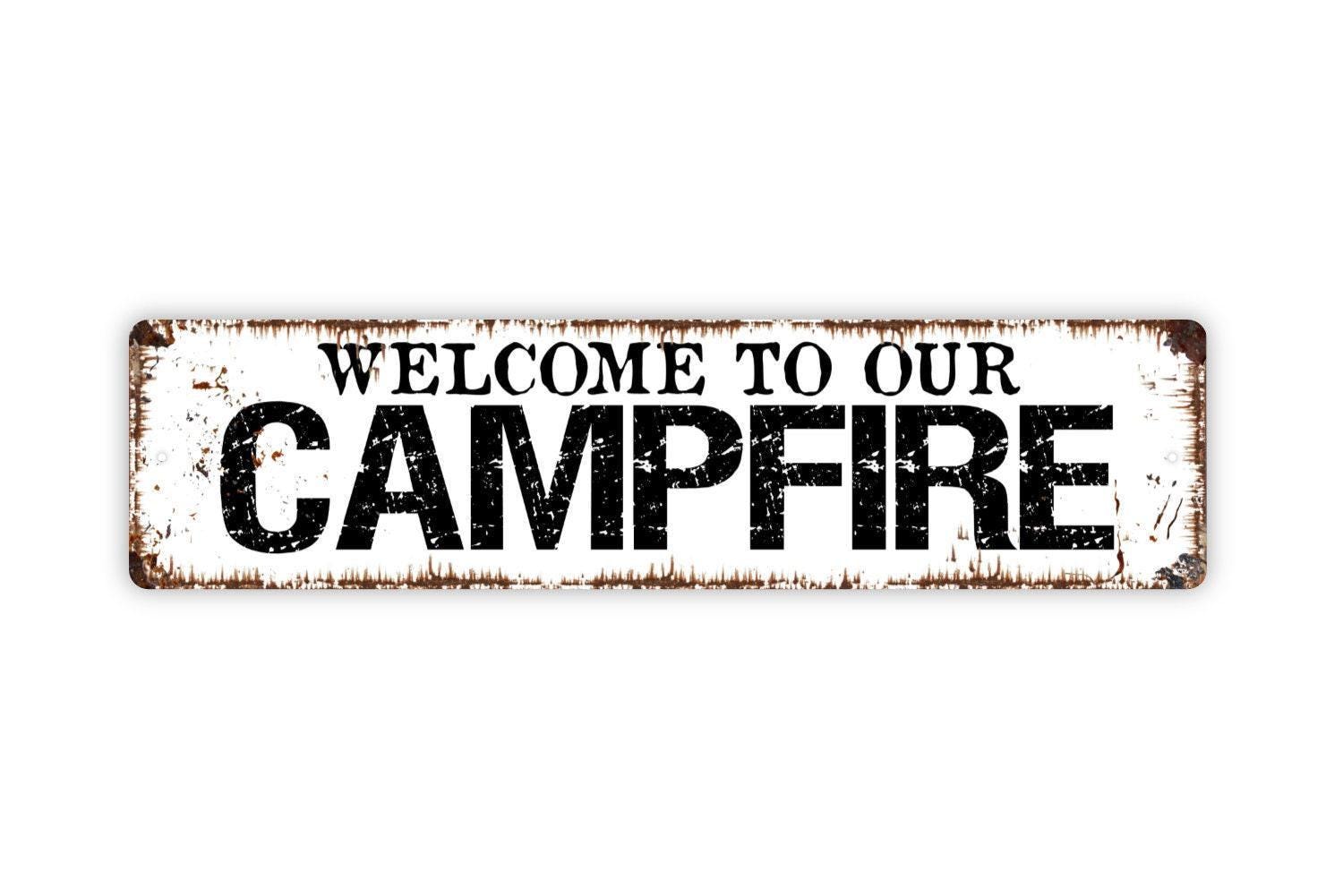 Welcome To Our Campfire Metal Sign - Camping Camper Fire Pit Vinyl Sticker Or Street Metal Sign or Door Name Plate Plaque