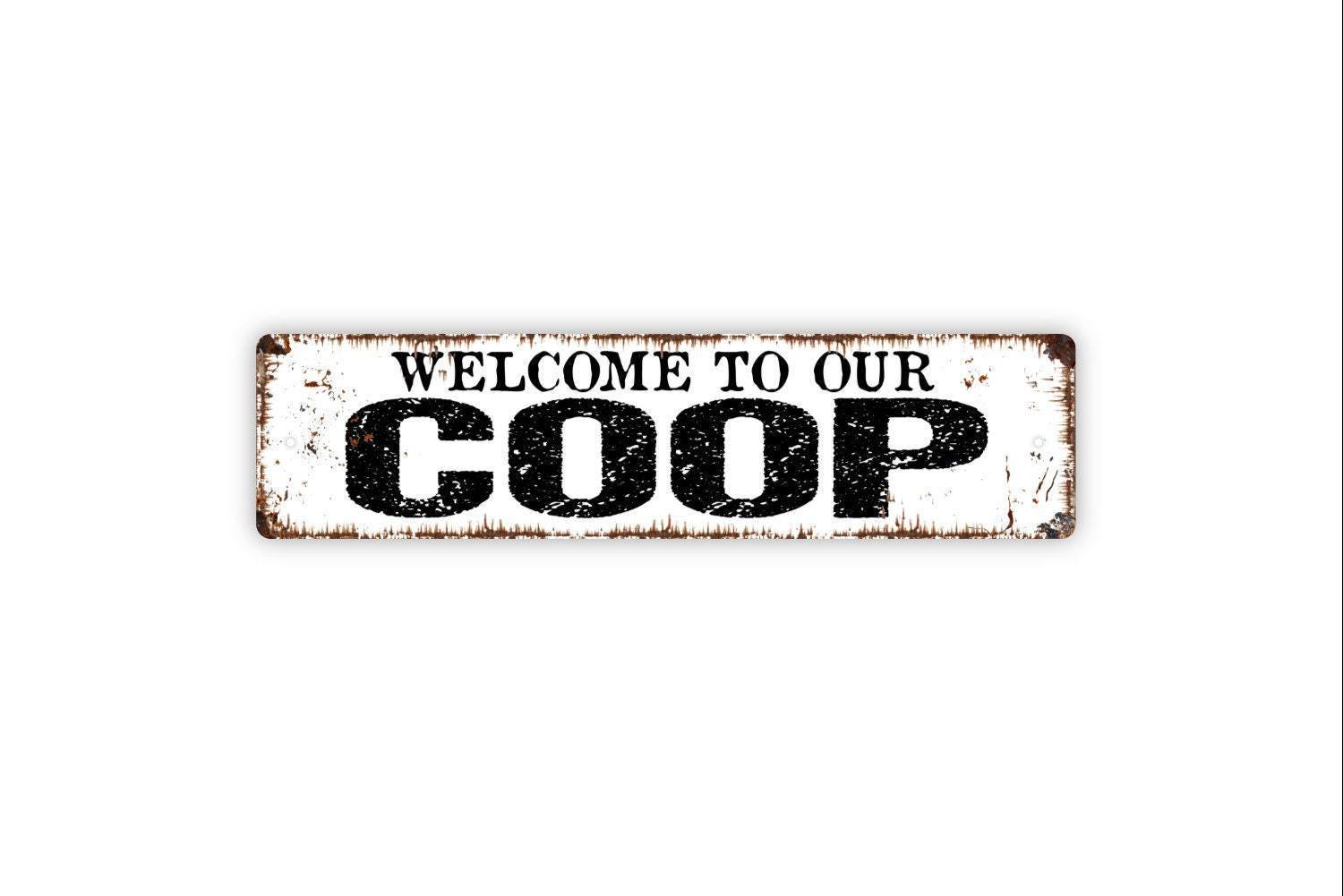 Welcome to Our Coop Sign | Farmhouse Chicken Decor | Metal Sign or Vinyl Sticker for Chicken Coop, Barn, Farmhouse, or Backyard