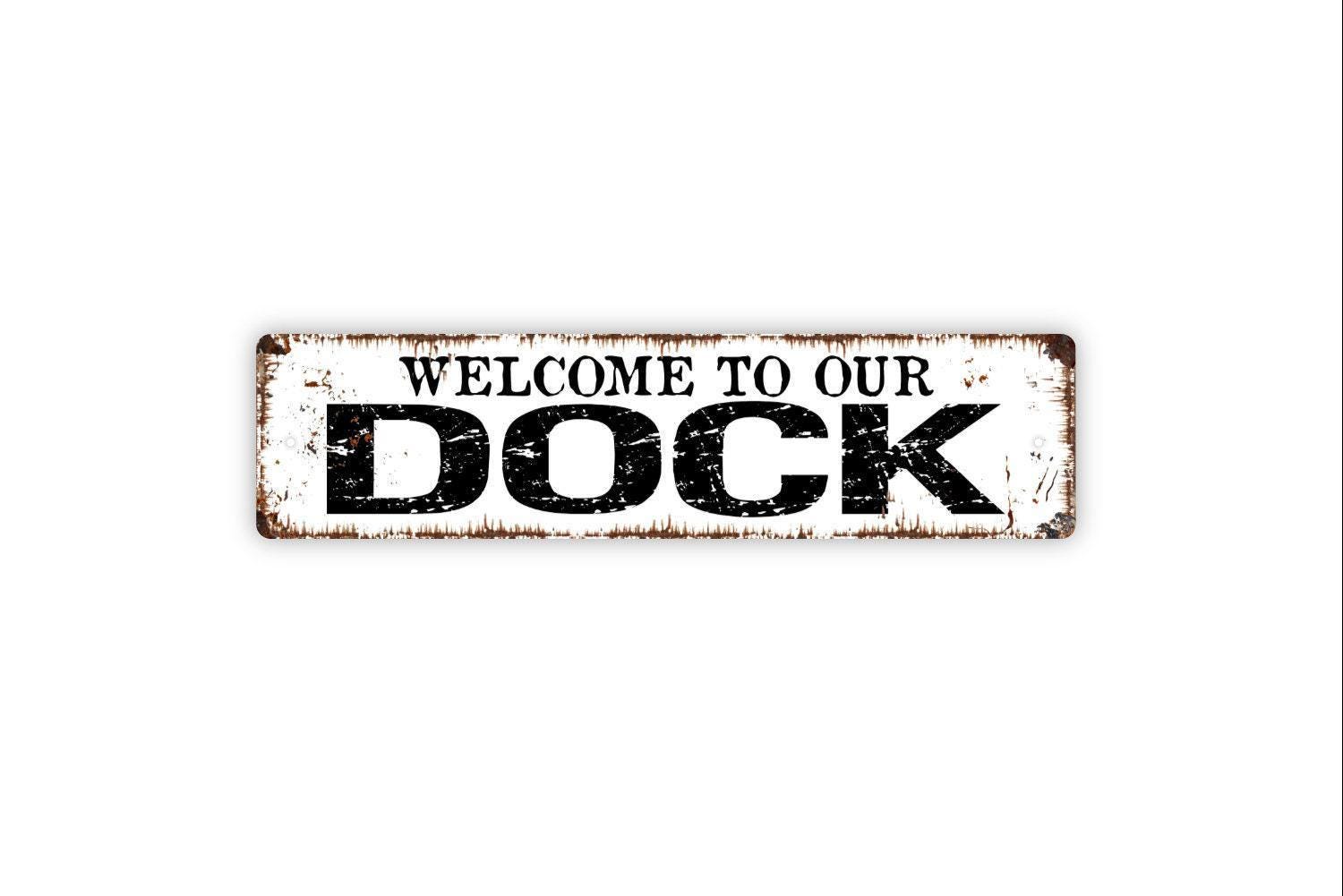 Welcome To Our Dock Sign - Boat Lake Fishing Pier Vinyl Sticker Or Street Metal Sign or Door Name Plate Plaque