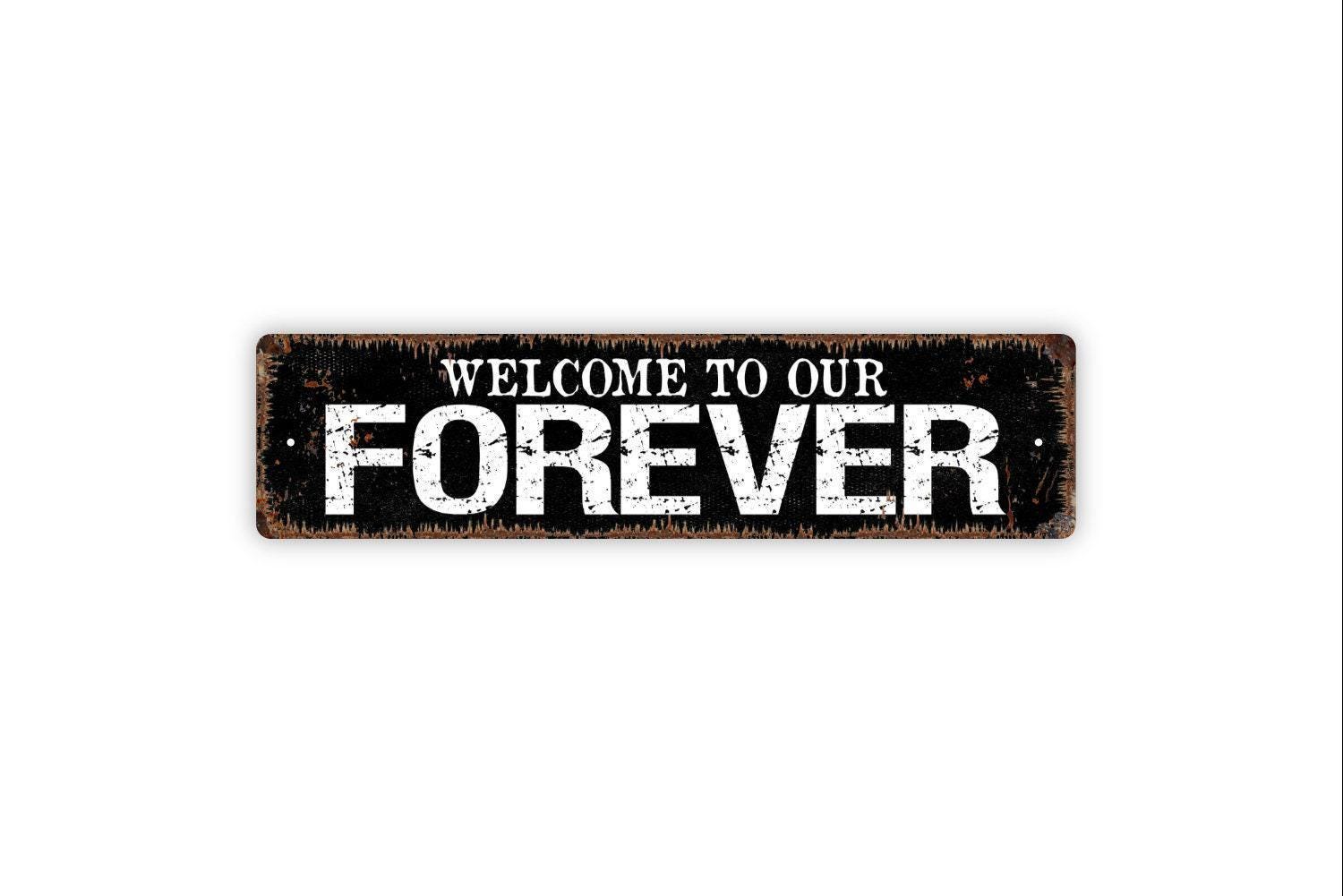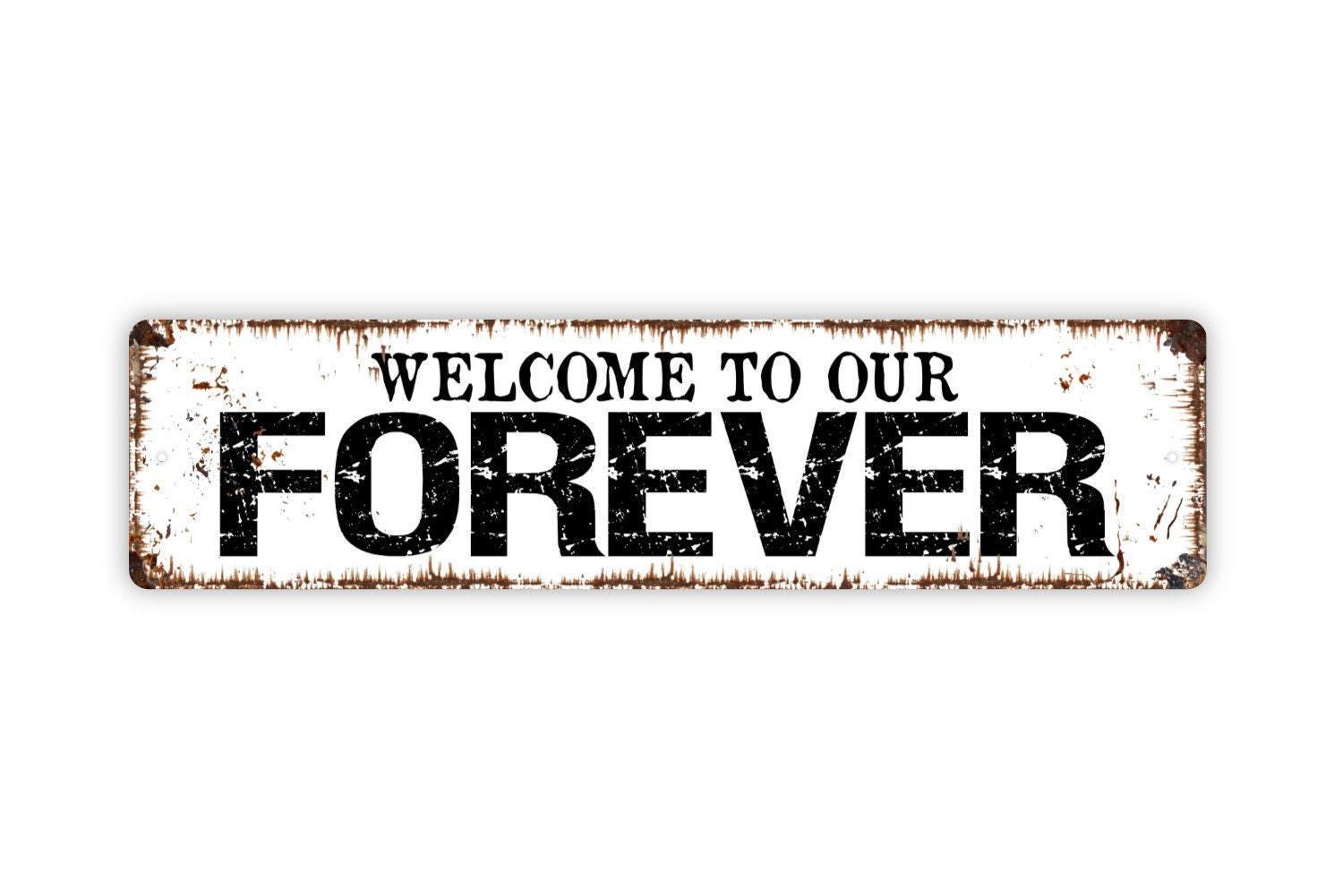 Welcome To Our Forever Sign - Wedding Happily Ever After Housewarming Gift Vinyl Sticker Or Street Metal Sign or Door Name Plate Plaque