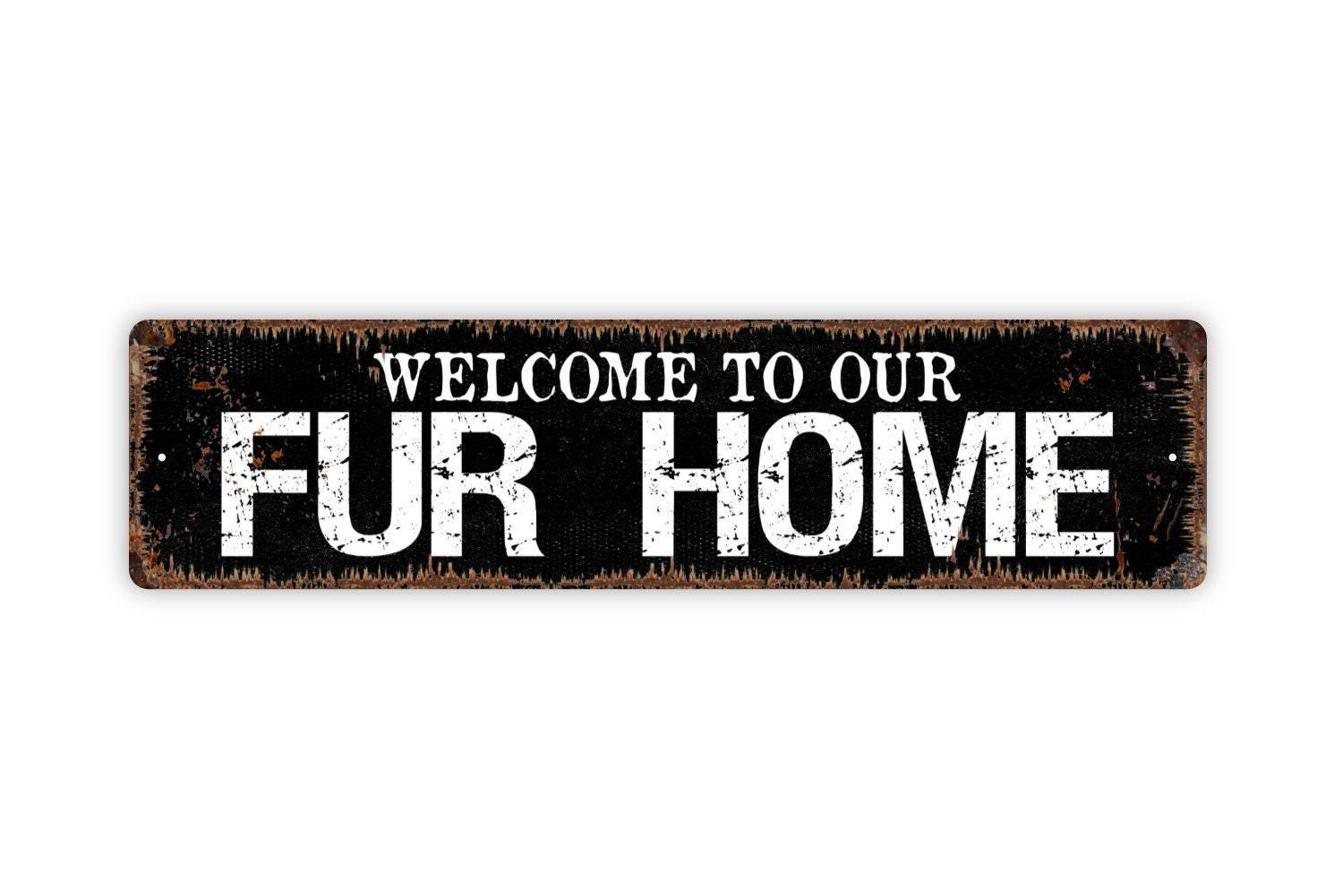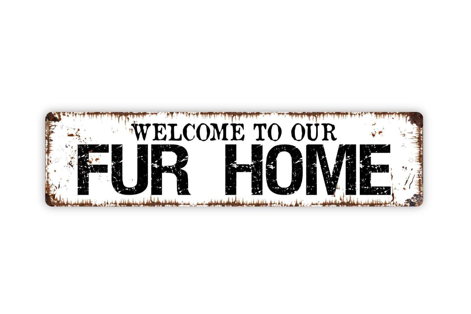 Welcome To Our Fur Home Sign - Dog Puppy Cat Feline Kitten Pet Lover Vinyl Sticker Or Street Metal Sign or Door Name Plate Plaque