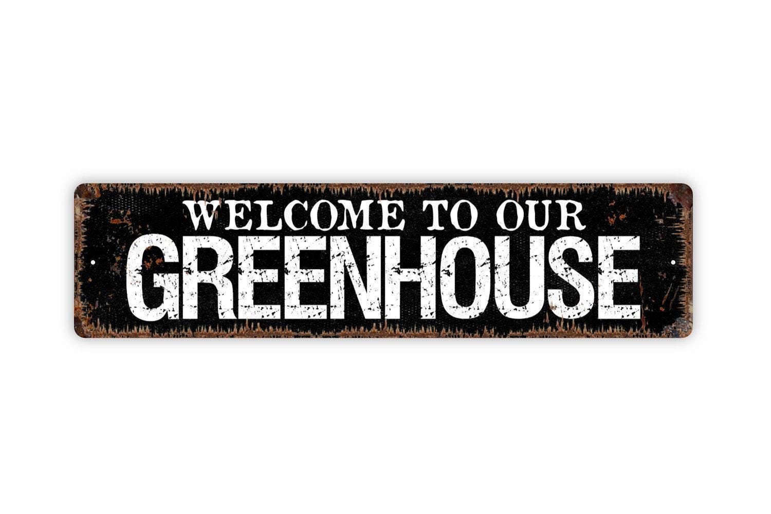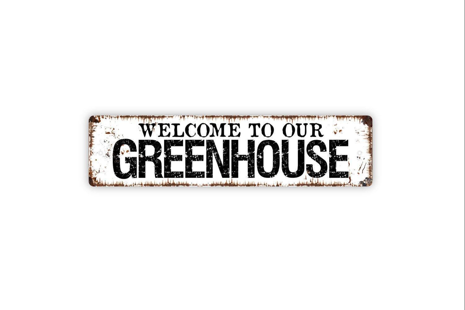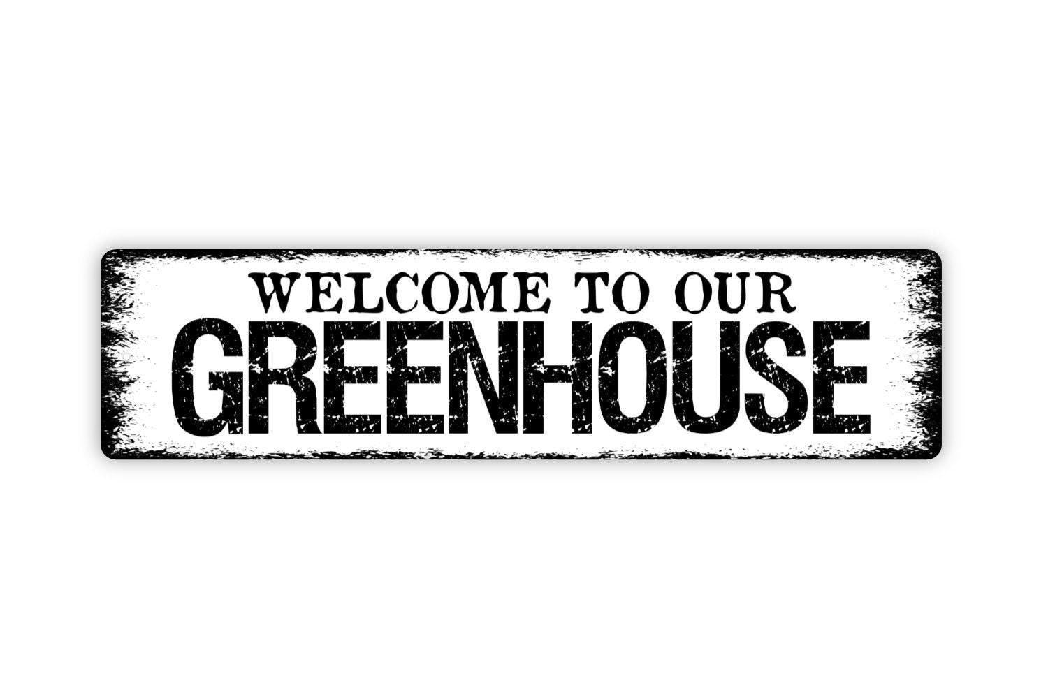 Welcome To Our Greenhouse Sign - Garden Vinyl Sticker Or Metal Street Sign or Door Name Plate Plaque