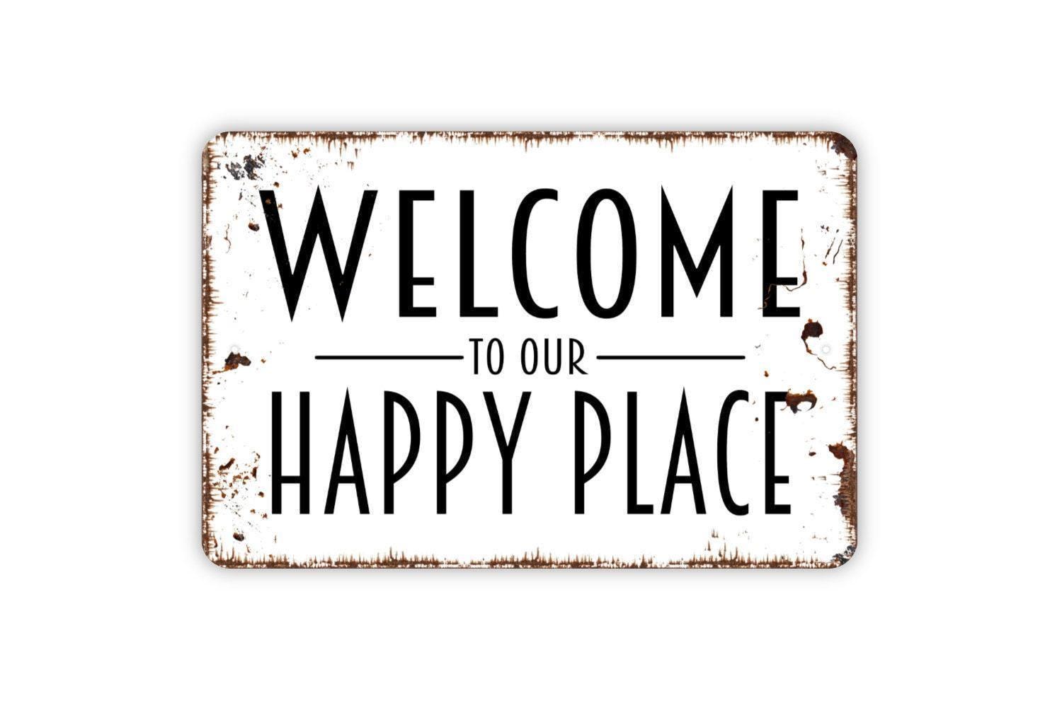 Welcome To Our Happy Place Sign - Indoor or Outdoor Metal Wall Art