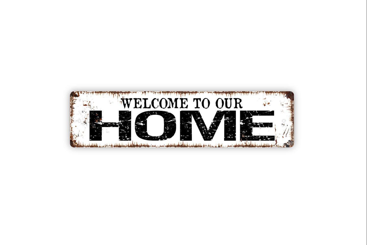 Greet guests in style with this Welcome To Our Home Sign, available as a metal sign or vinyl sticker. Perfect for front porches, entryways, or farmhouse décor, this rustic sign also makes a thoughtful gift for family, friends, or new homeowners.