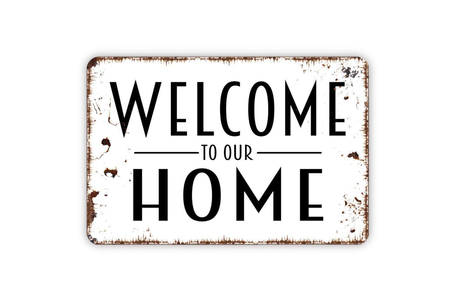 Welcome To Our Home Sign | Rustic Entryway, Porch, or Living Room Wall Décor | Farmhouse Style Metal Sign or Vinyl Sticker House Gift