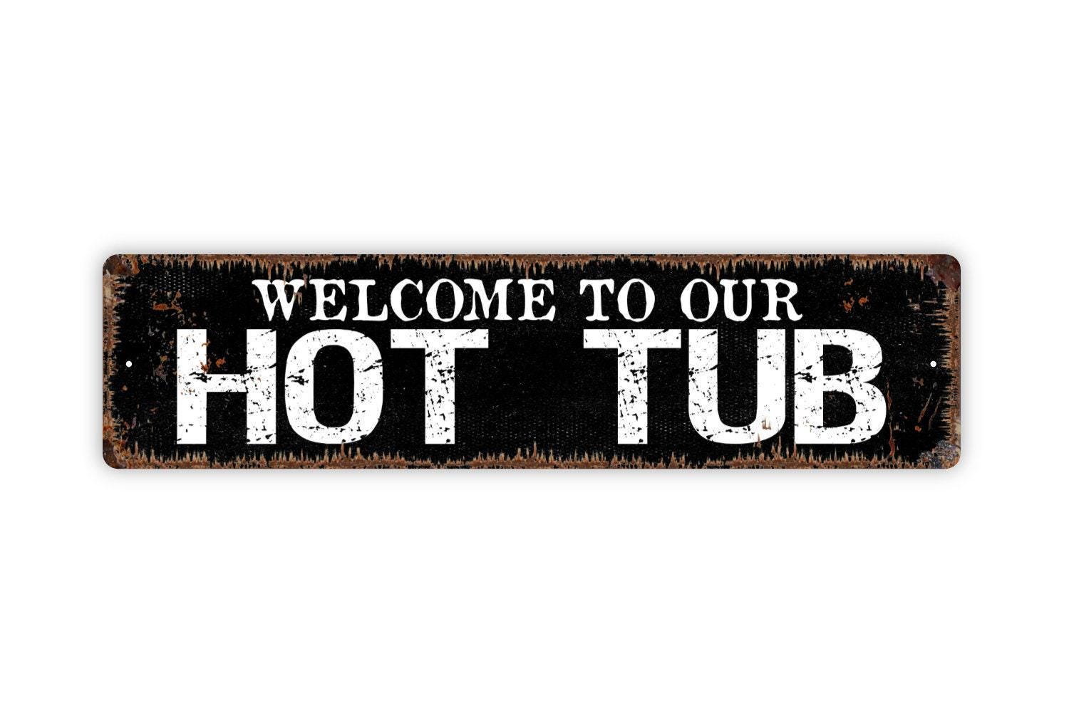 Welcome To Our Hot Tub Sign - Spa Patio Vinyl Sticker Or Street Metal Sign or Door Name Plate Plaque