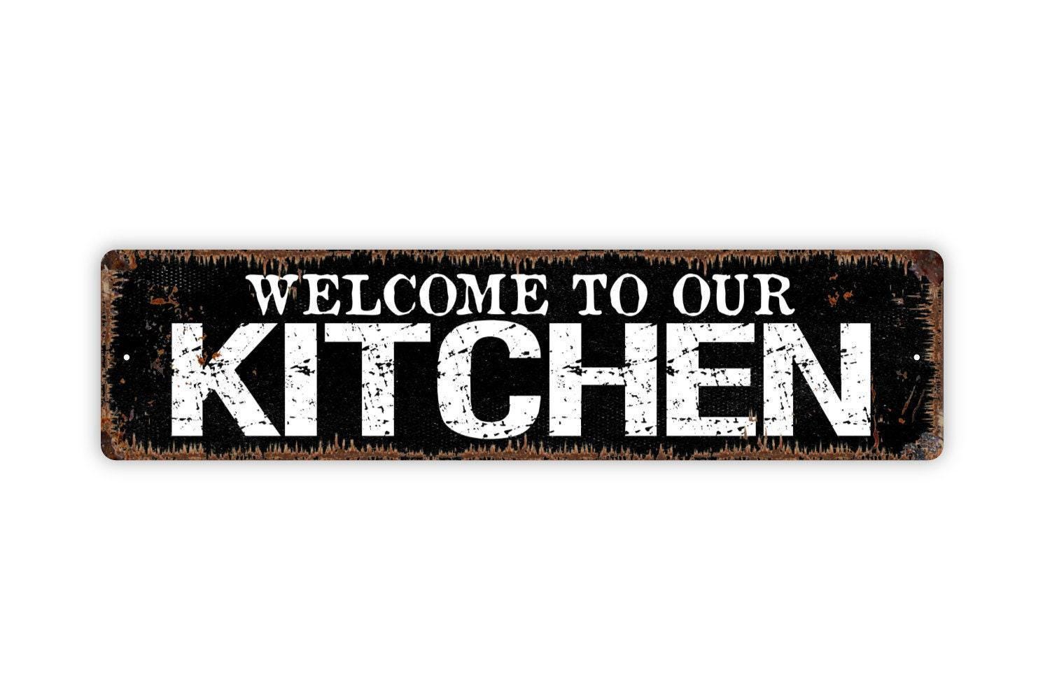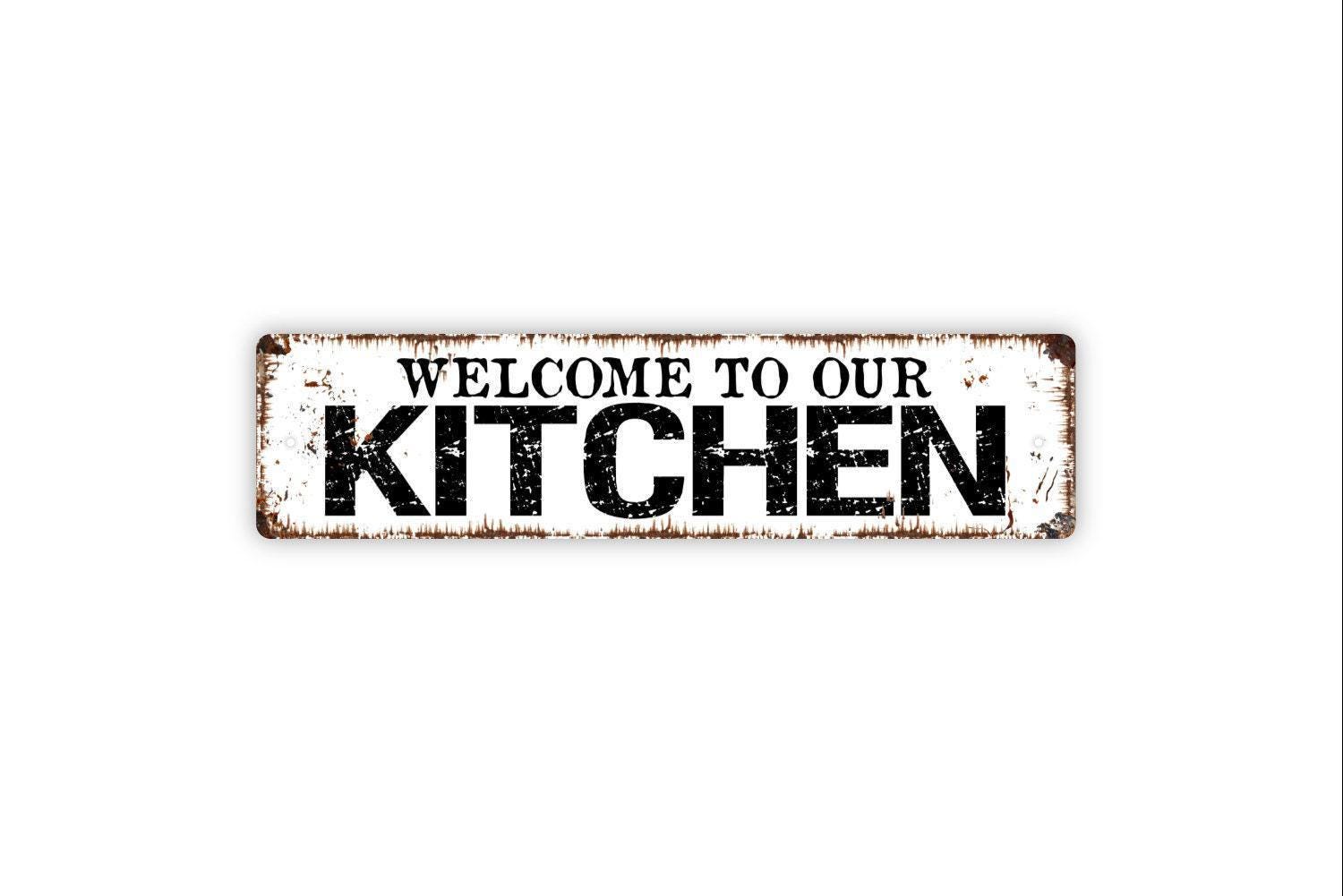 Welcome To Our Kitchen Sign - Vinyl Sticker Or Metal Street Sign or Door Name Plate Plaque
