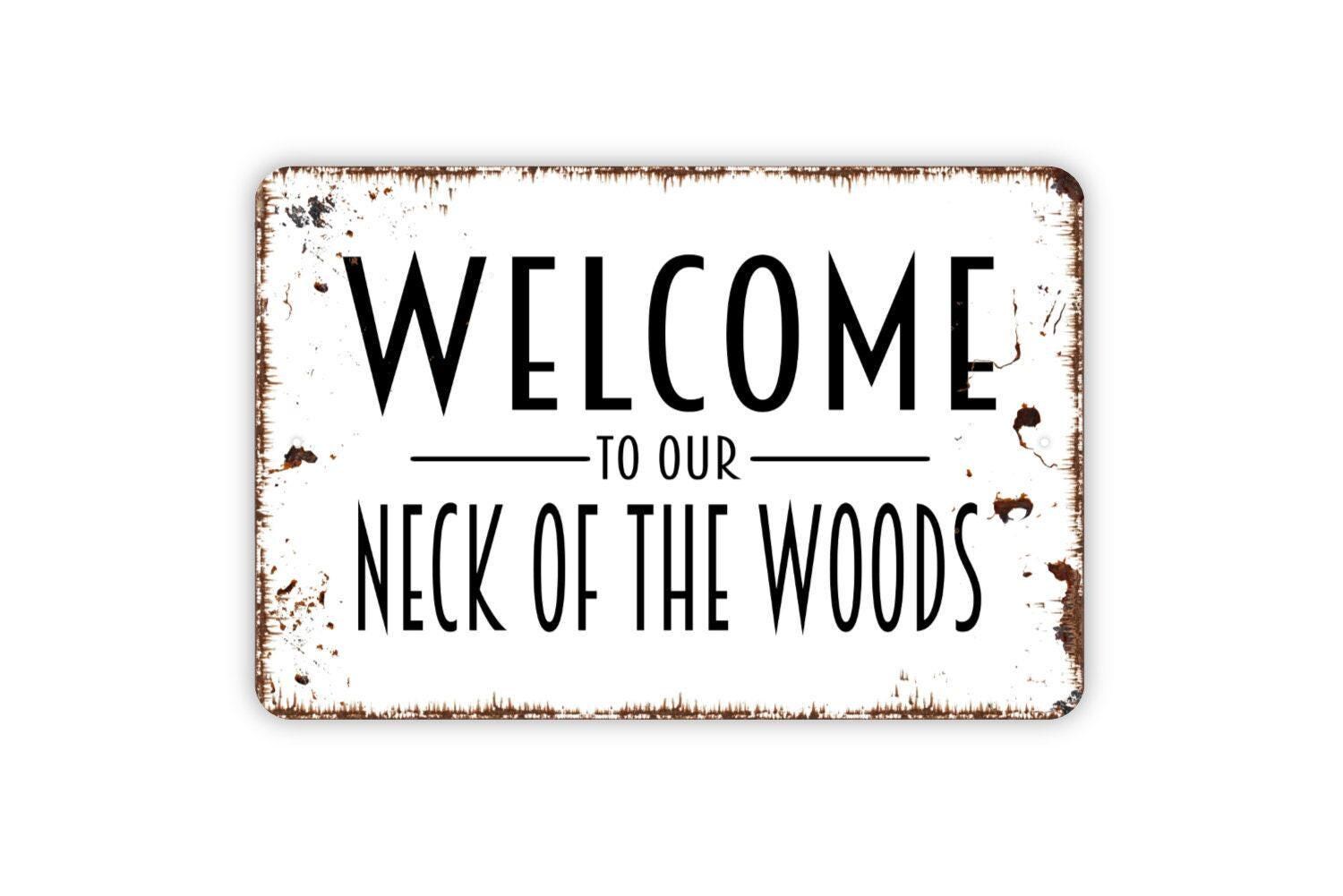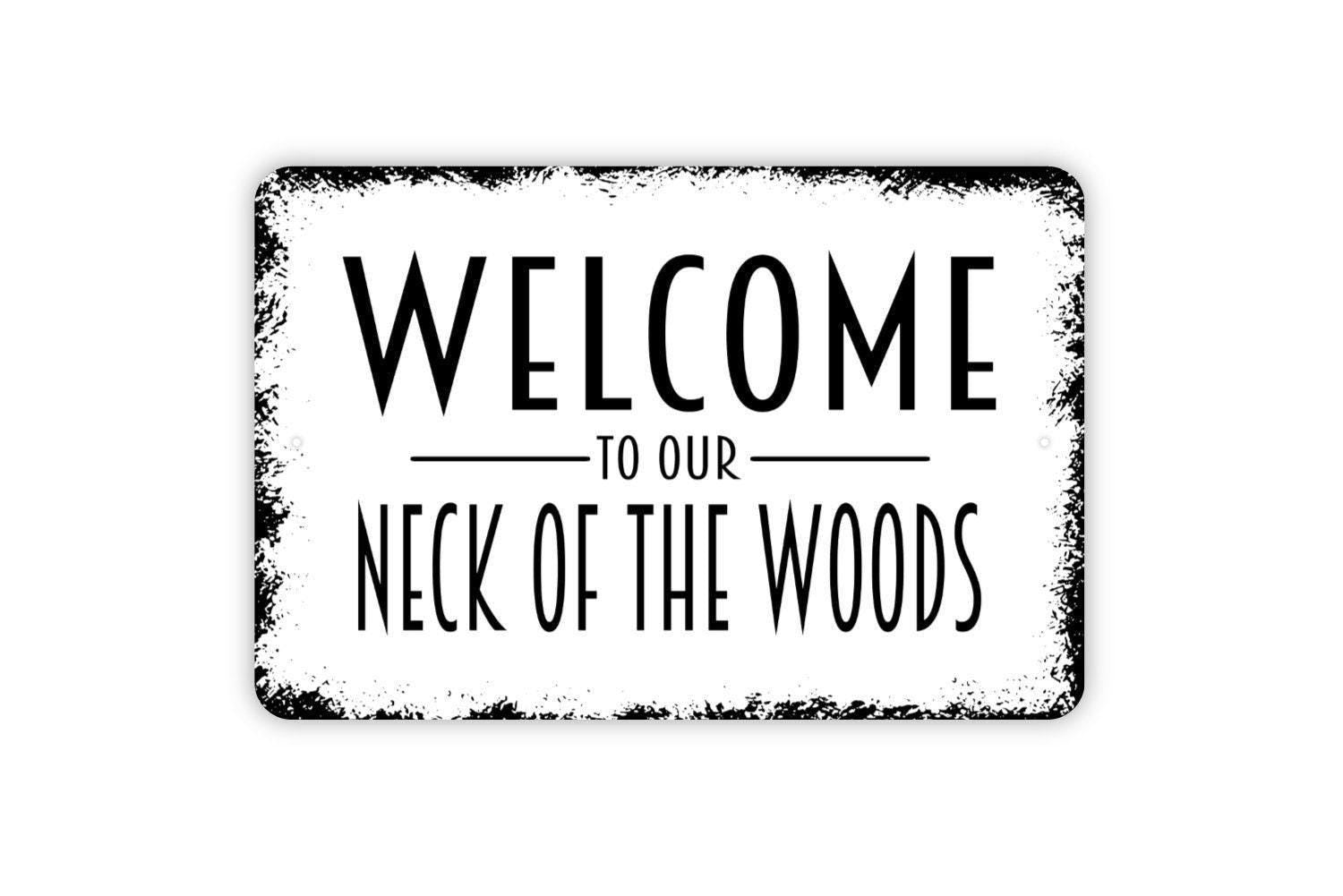 Welcome To Our Neck Of The Woods Sign - Metal Indoor or Outdoor Wall Art
