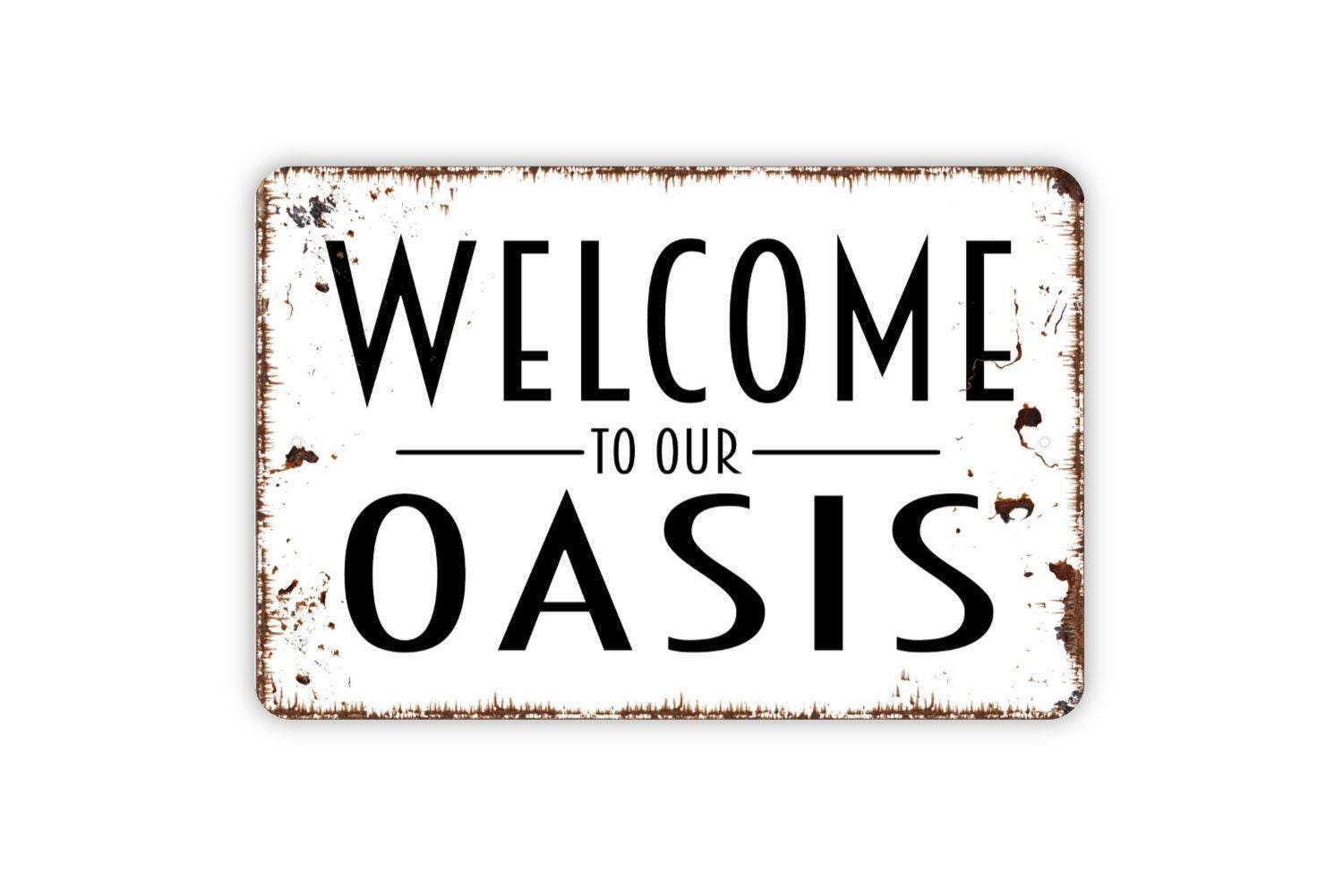 Welcome To Our Oasis Sign - Metal Indoor or Outdoor Wall Art