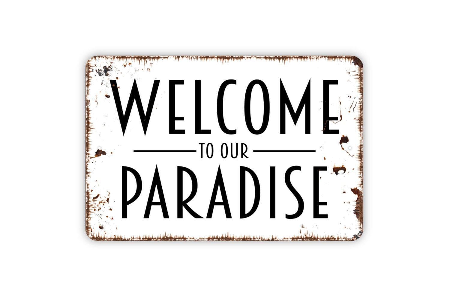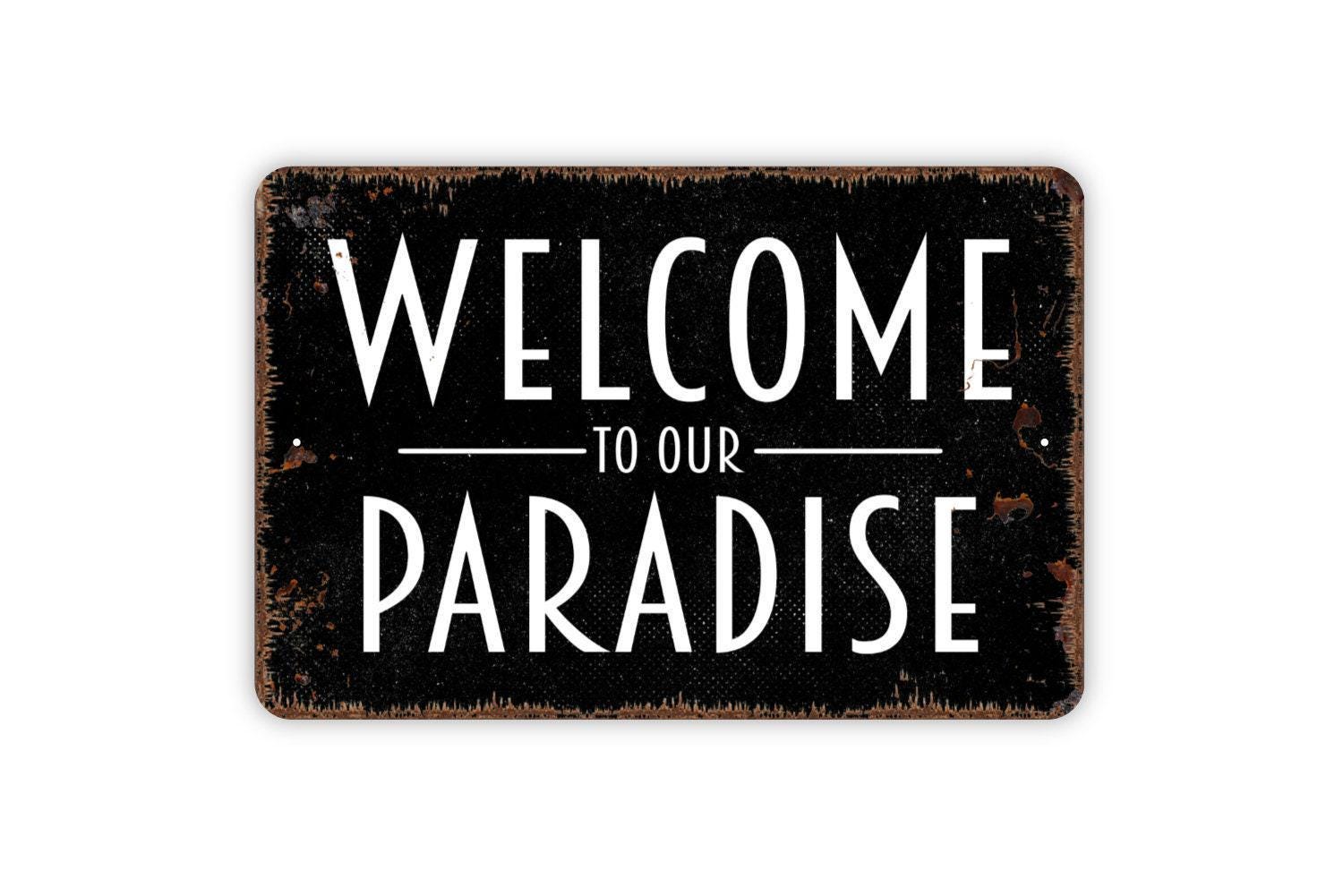 Welcome To Our Paradise Sign - Metal Indoor or Outdoor Wall Art