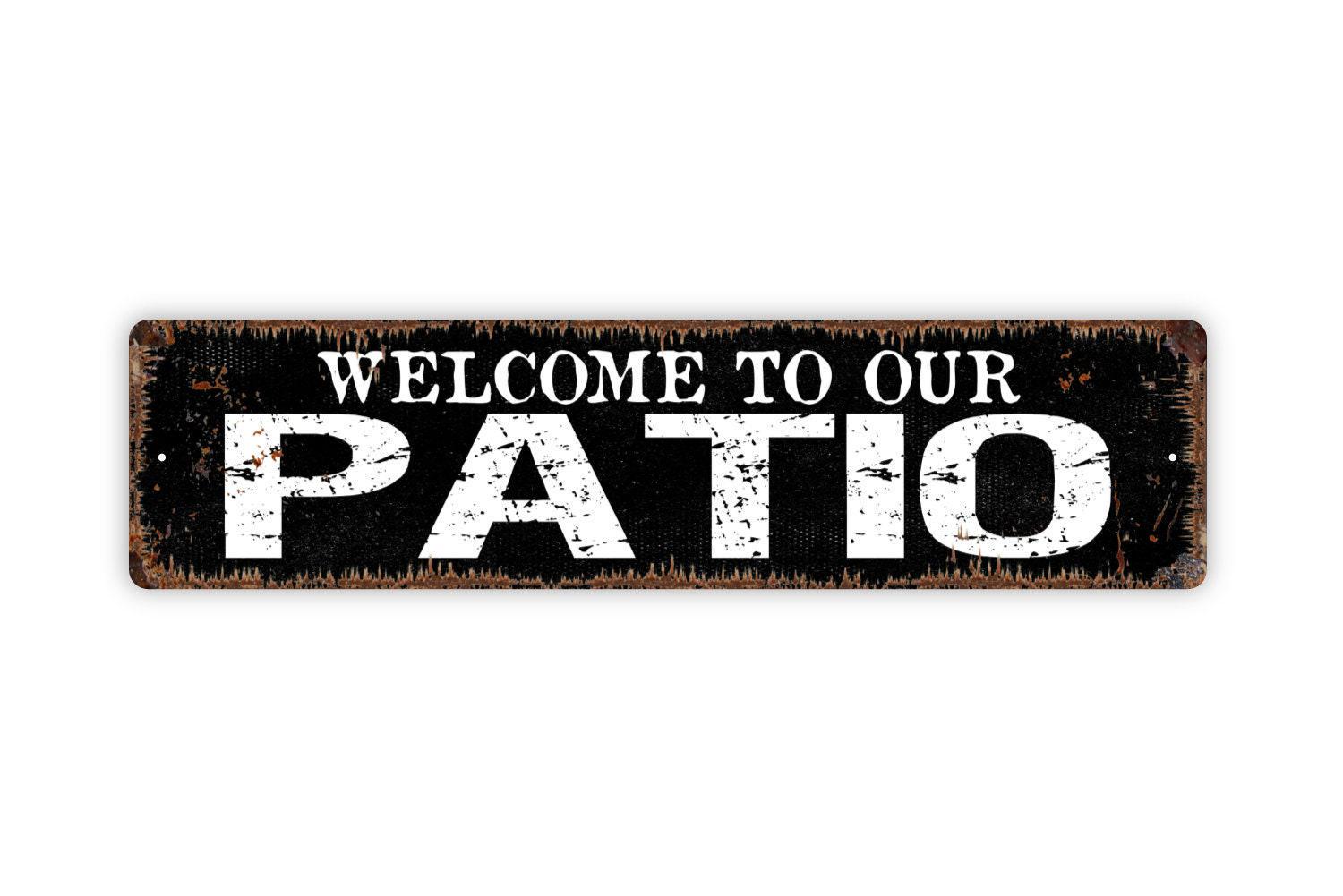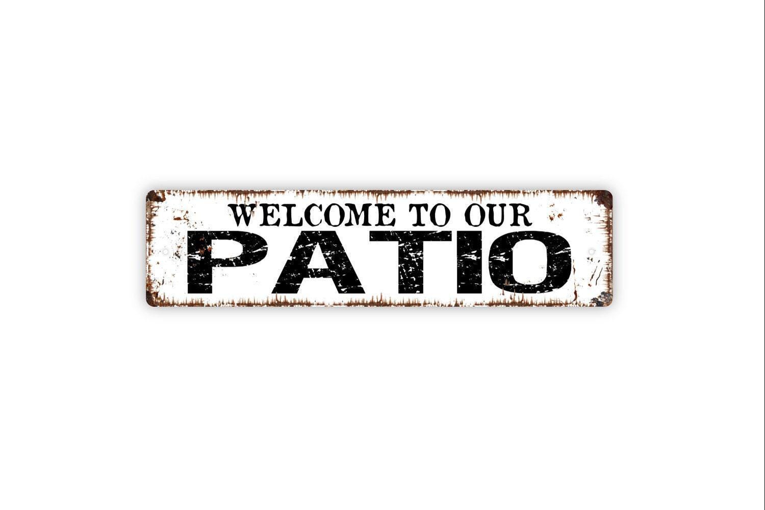 Welcome To Our Patio Sign - Backyard Deck Lounge Patio Relax Sip Grill Vinyl Sticker Or Street Metal Sign or Door Name Plate Plaque