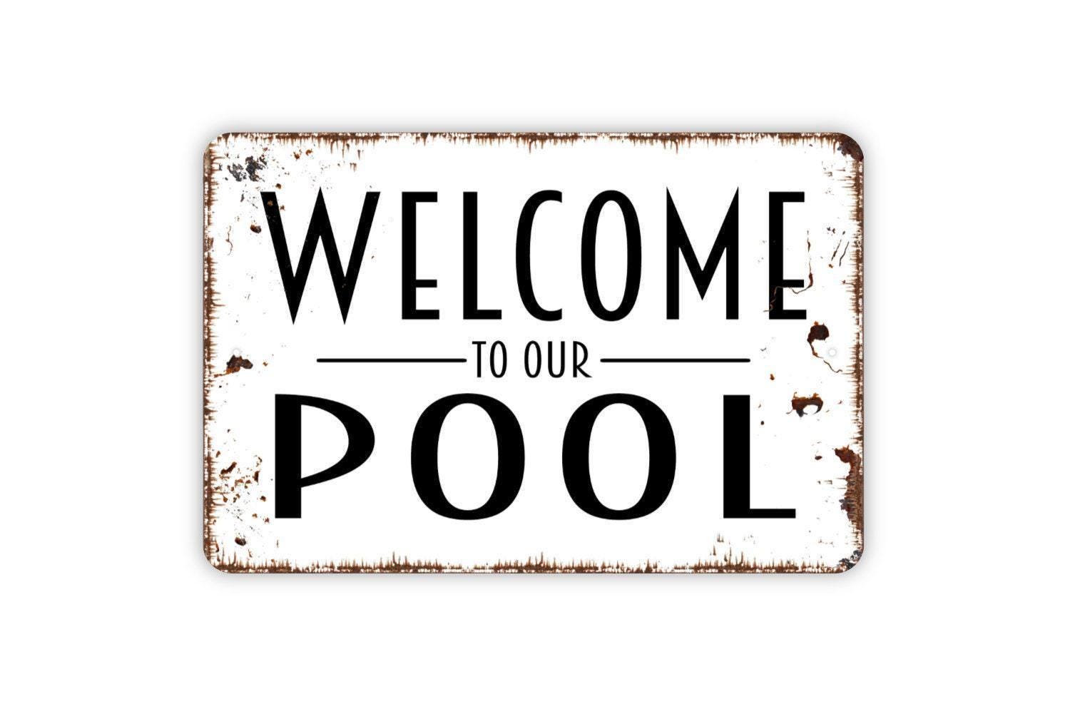 Welcome To Our Pool Metal Sign - Swimming Pool Metal Wall Art - Indoor or Outdoor
