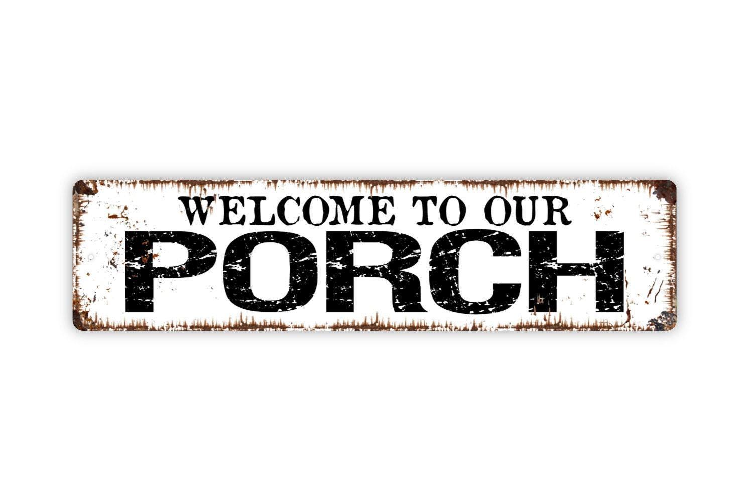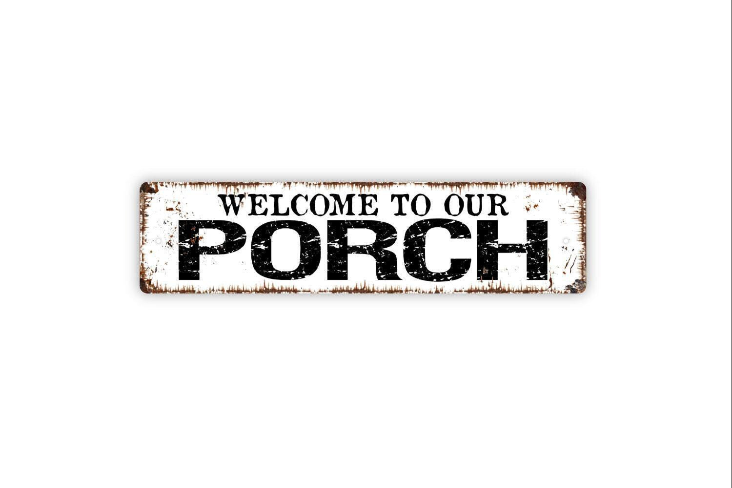 Welcome To Our Porch Sign - Metal Vinyl Sticker Or Street Sign or Door Name Plate Plaque