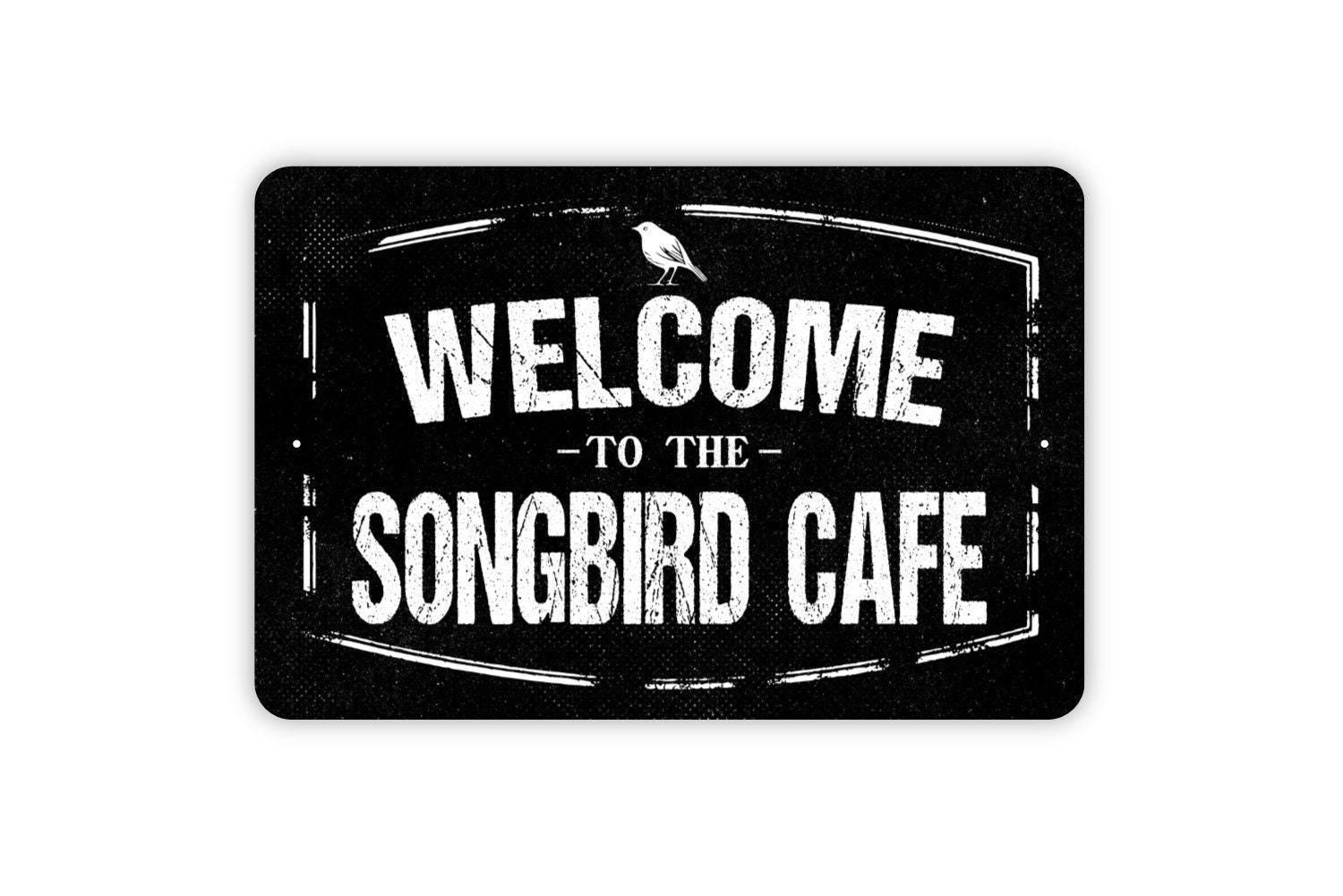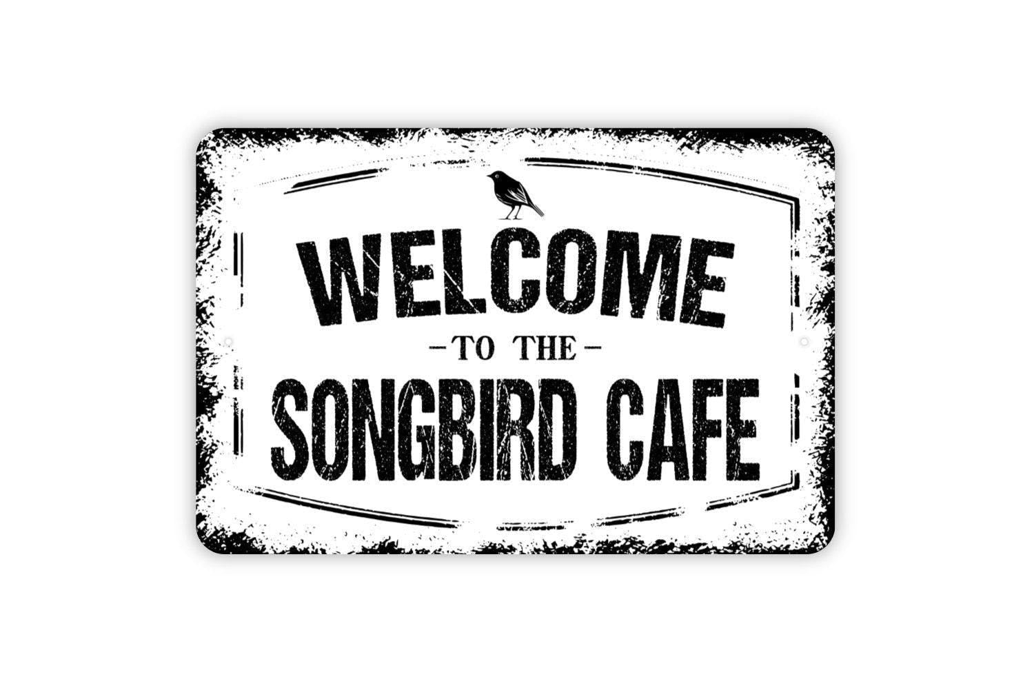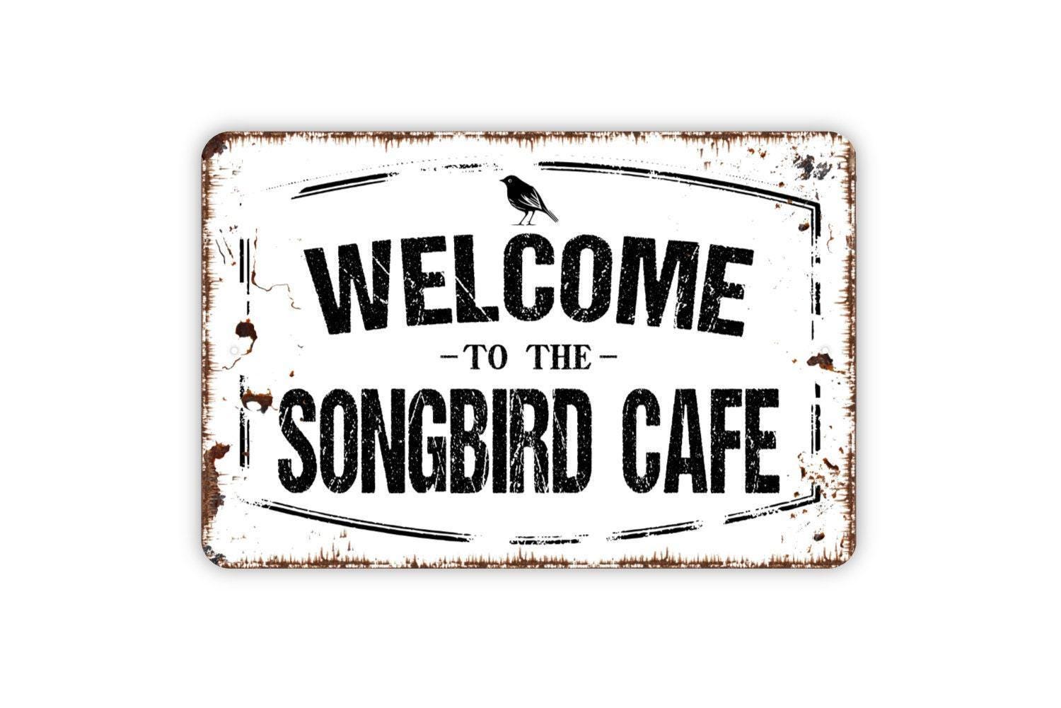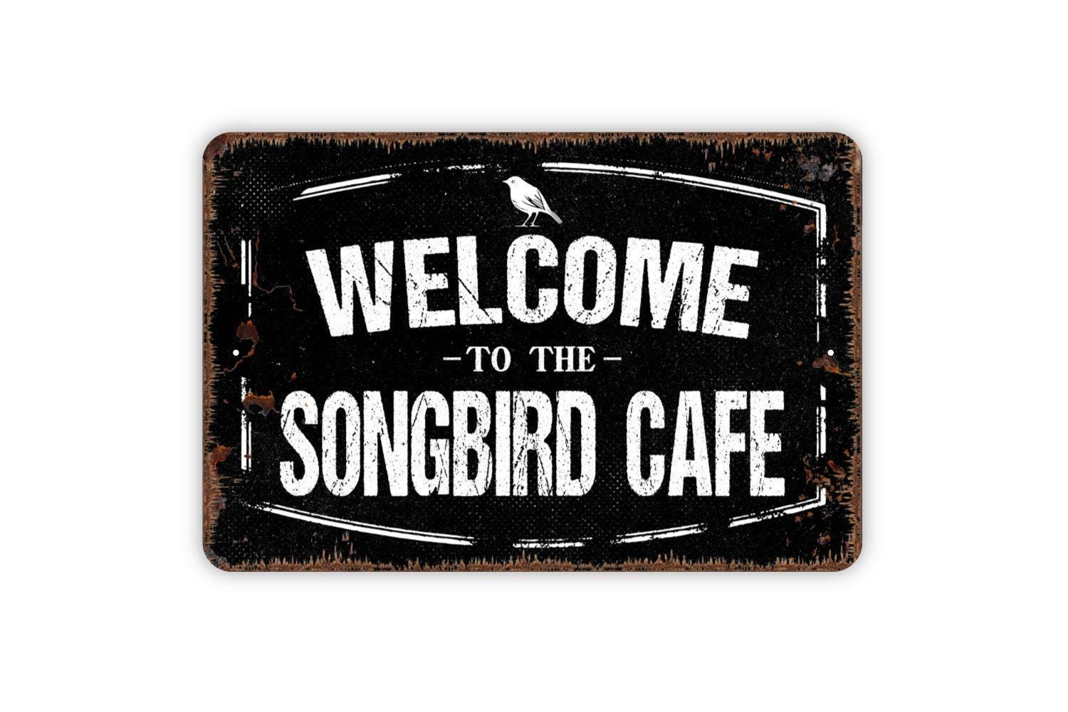 Welcome To Our Songbird Cafe Sign - Bird Watching Area Bird Feeders Metal Wall Art Indoor Or Outdoor