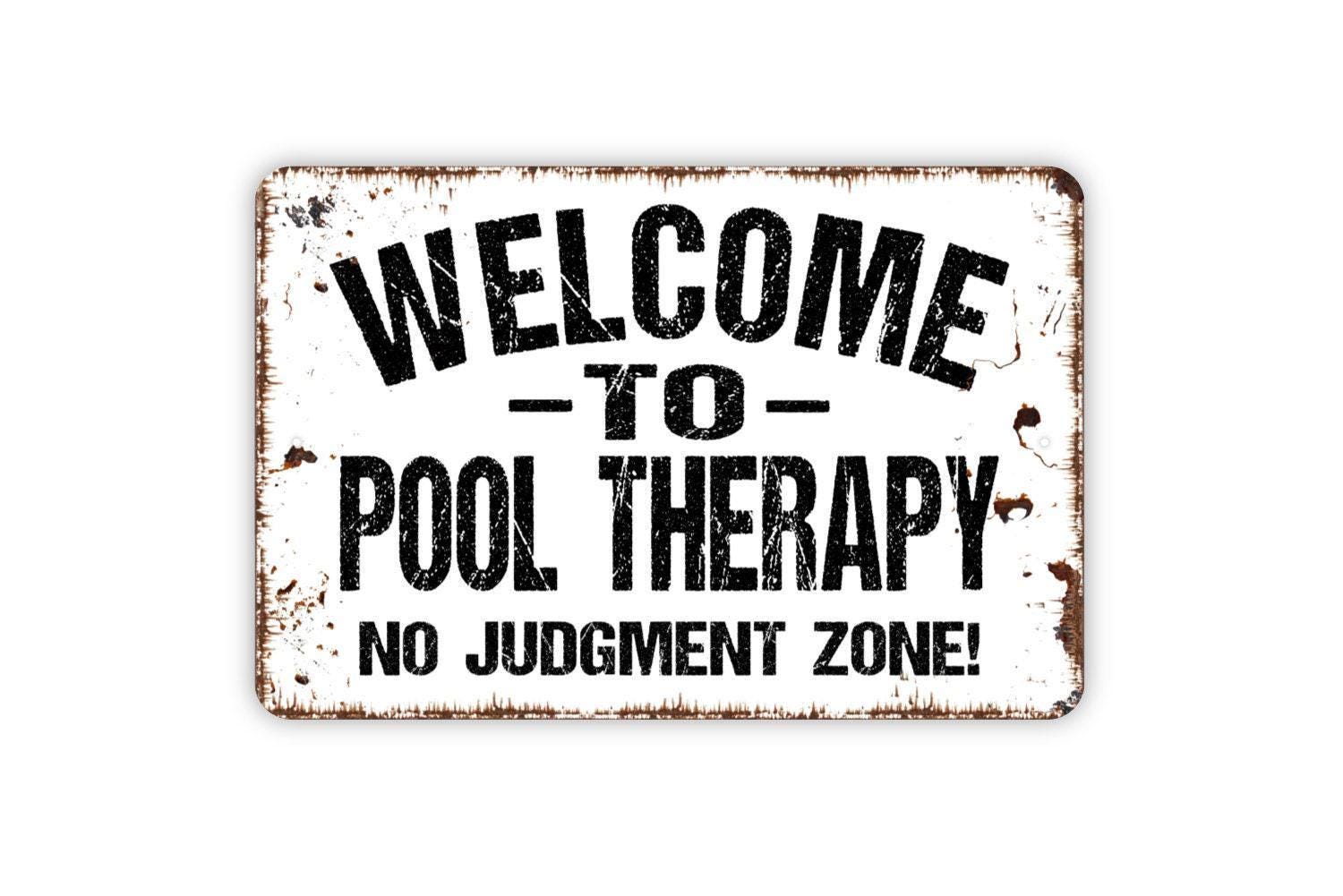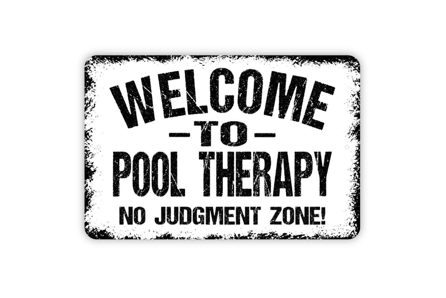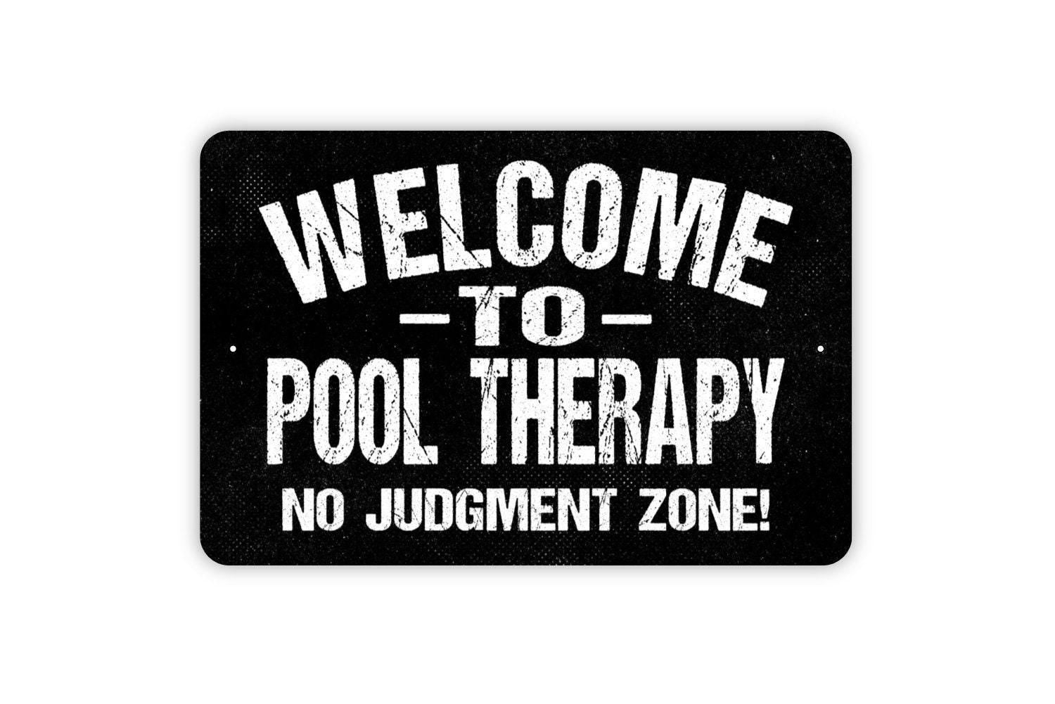 Welcome To Pool Therapy No Judgement Zone Sign - Swimming Pool Metal Art