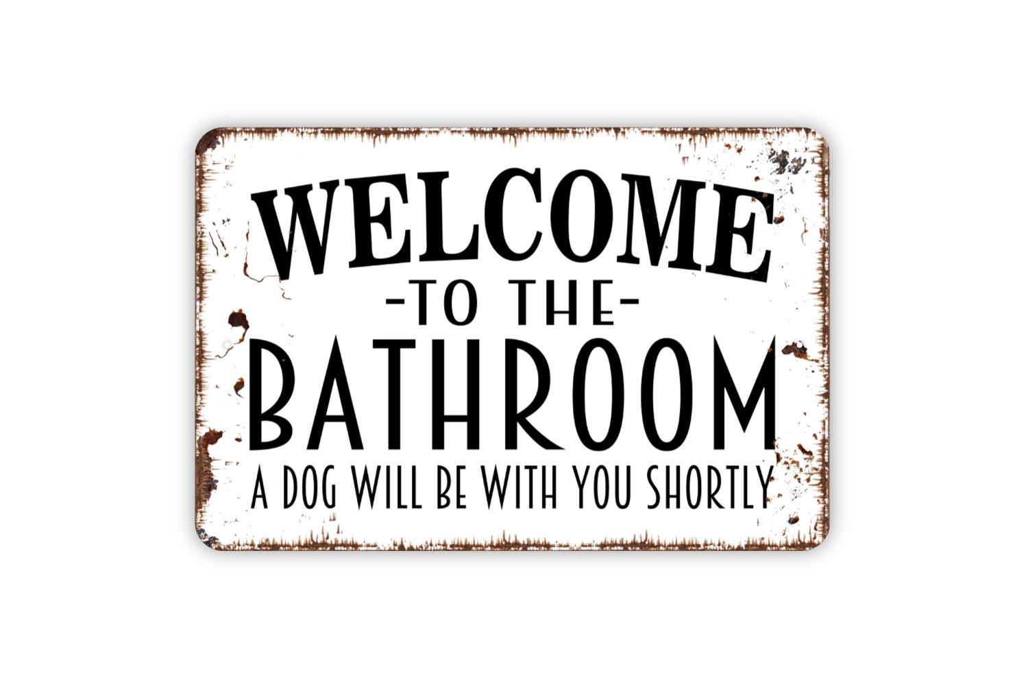 Welcome To The Bathroom A Dog Will Be With You Shortly Sign | Funny Dog Bathroom Decor | Metal Sign or Vinyl Sticker | Dog Lover Wall Art