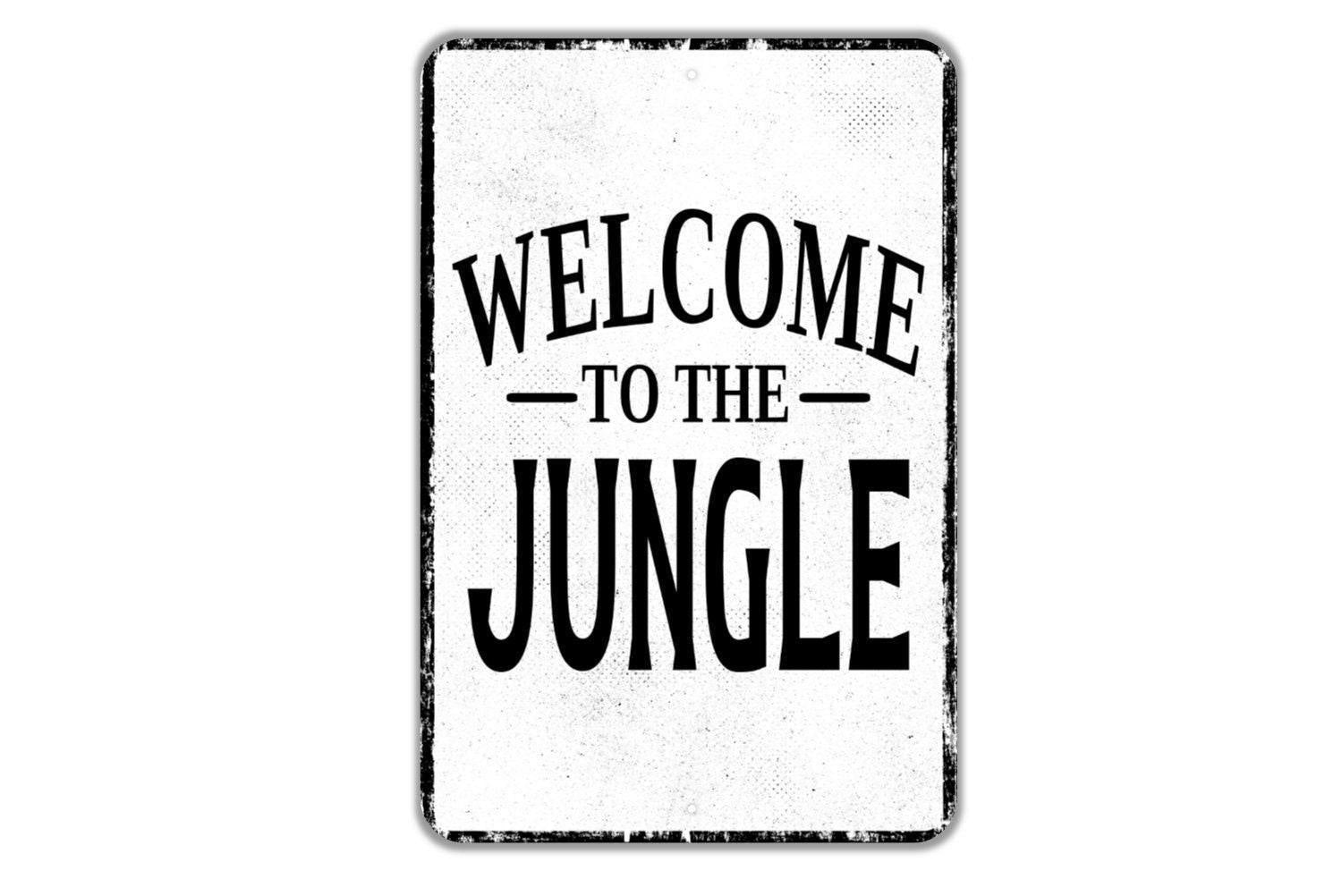 Welcome To The Jungle Sign Metal Wall Art or Vinyl Sticker for Kids Room, Nursery, Playroom, Zoo Party, Safari Theme, Jungle Animal Sign