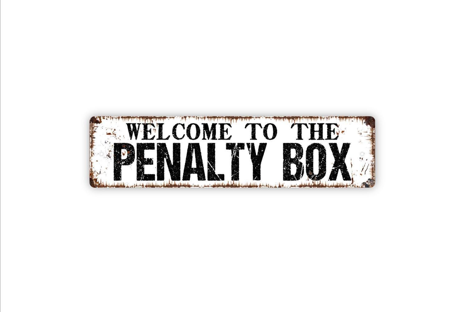Welcome To The Penalty Box Sign - Sports Hockey Arena Player Team Coach Rustic Street Metal Sign or Door Name Plate Plaque Indoor Or Outdoor