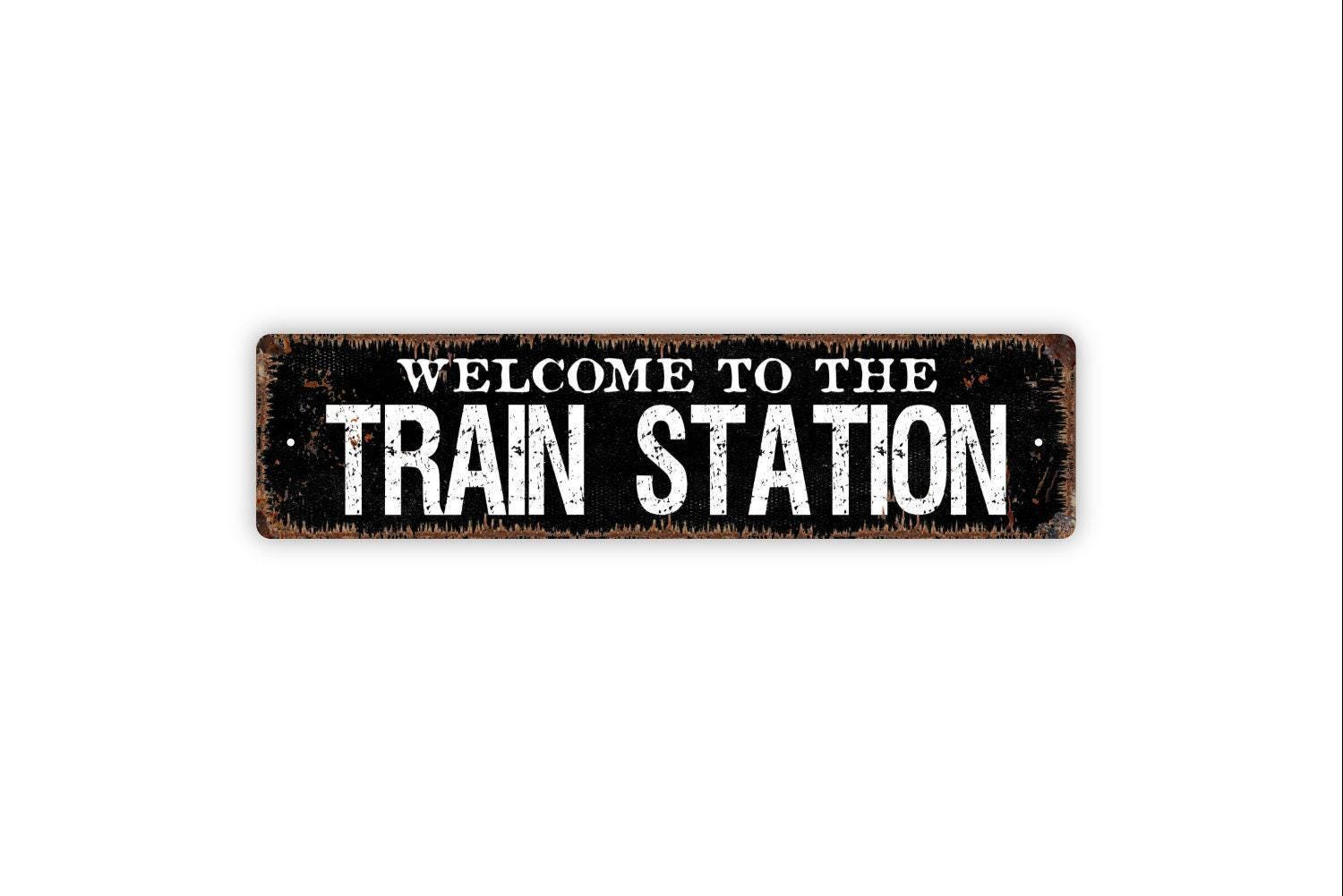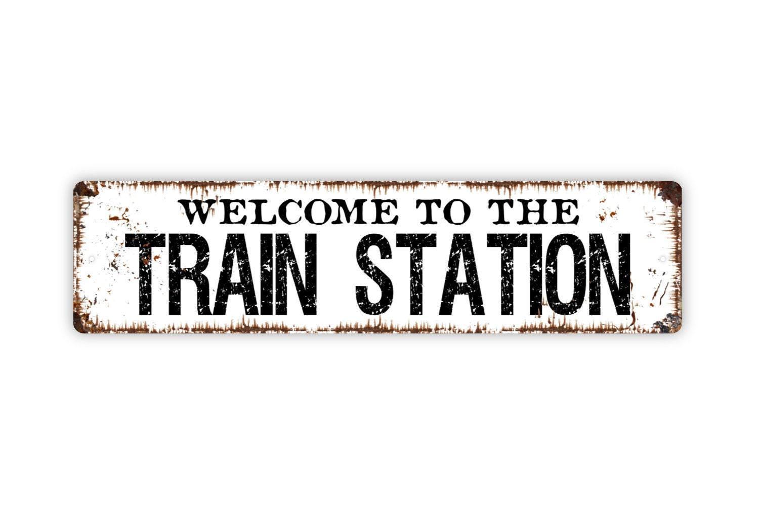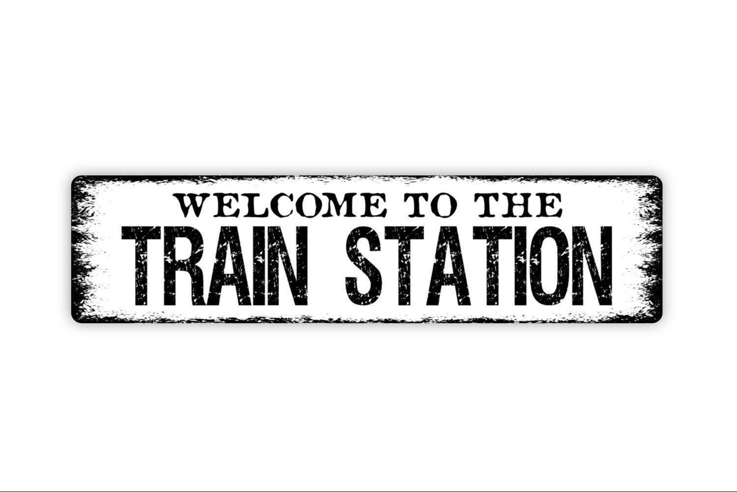 Welcome To The Train Station Sign - Metal Indoor or Outdoor Wall Art