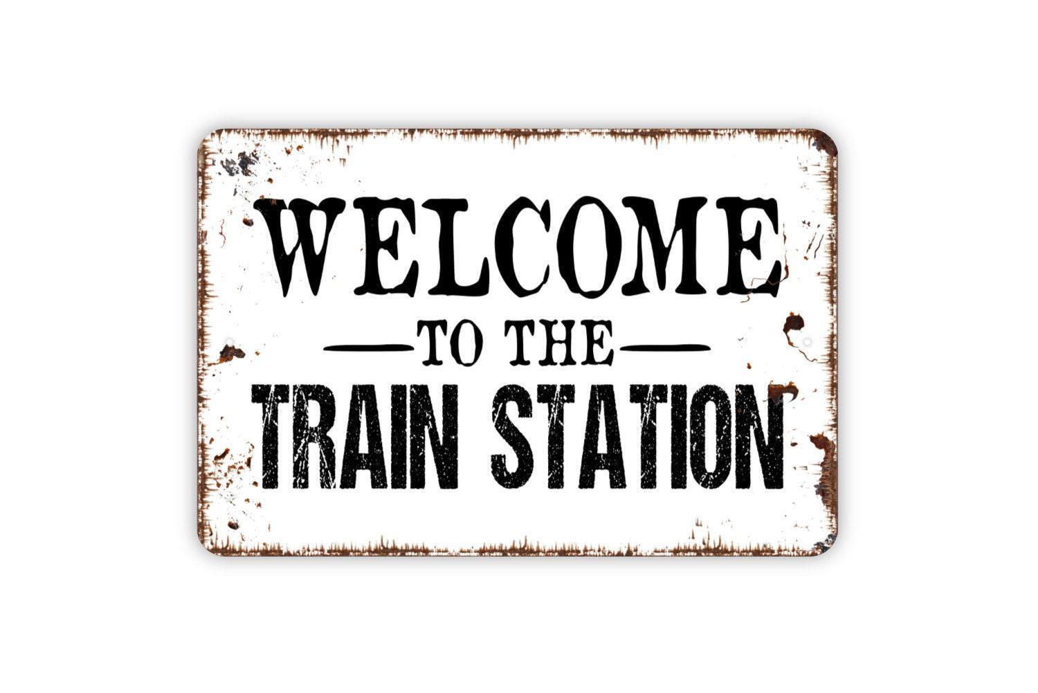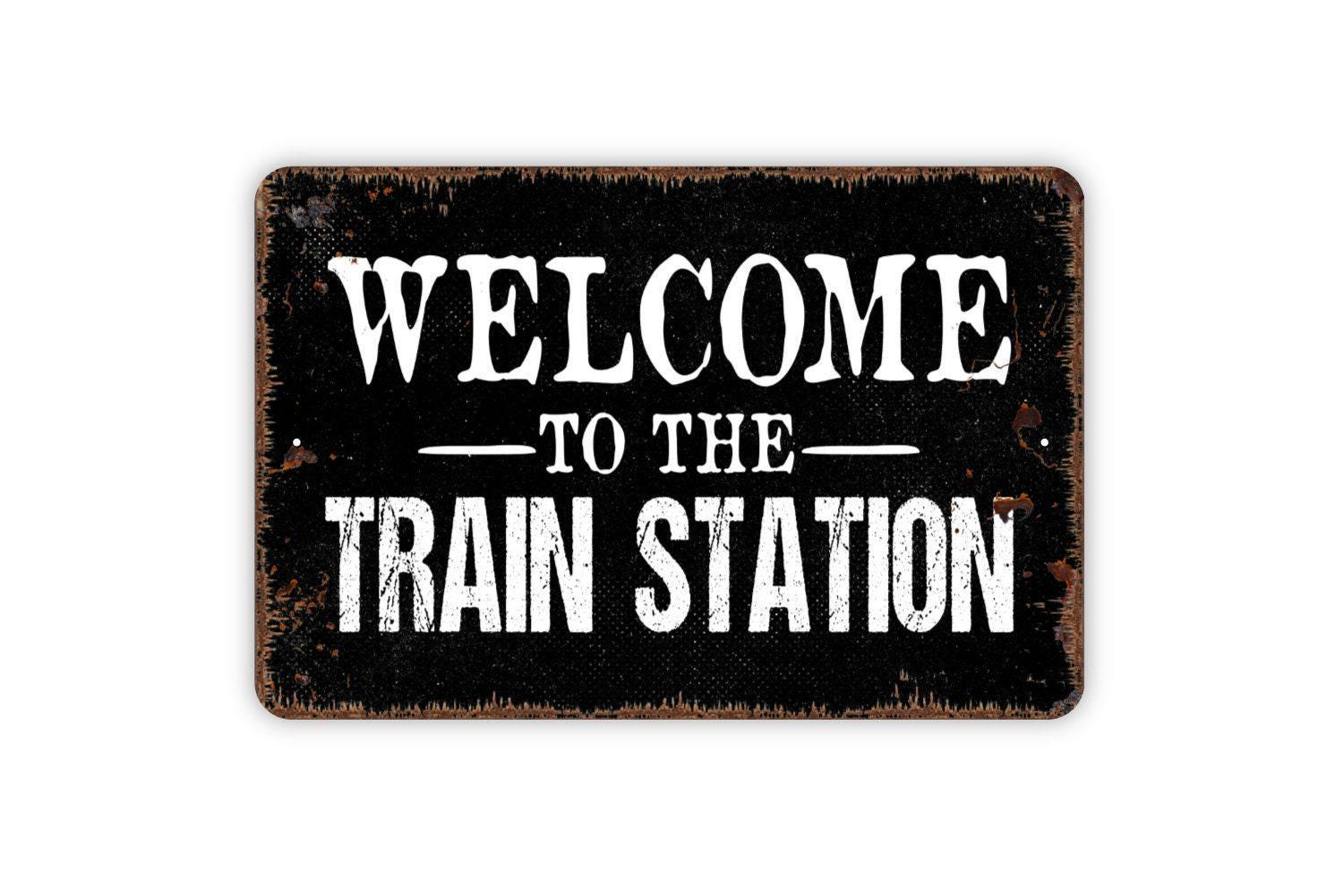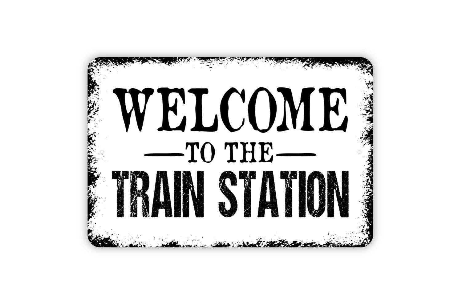 Welcome To The Train Station Sign - Metal Wall Art - Indoor or Outdoor