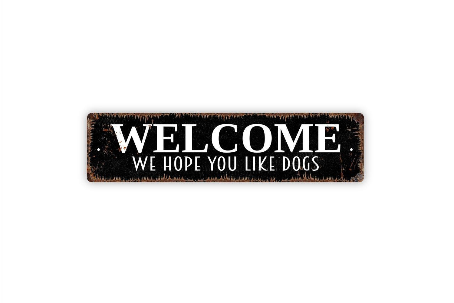 Welcome We Hope You Like Dogs Sign, Funny Dog Vinyl Sticker Or Custom Metal Sign, Vinyl Sticker Or Street Sign or Door Name Plate Plaque