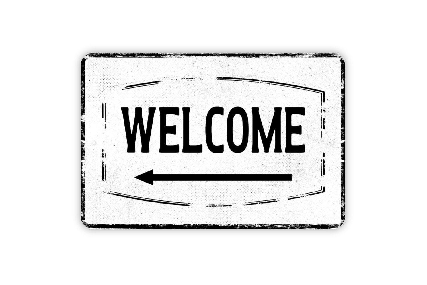 Welcome With Arrow Sign Left or Right Metal Wall Art or Vinyl Sticker for Front Porch, Entryway, Home Decor, Directional Welcome Wall Sign
