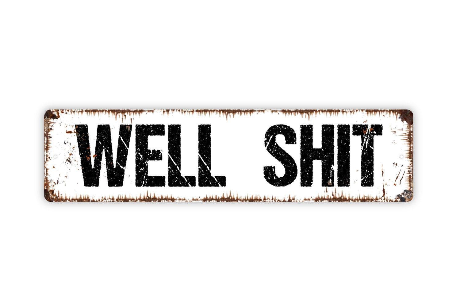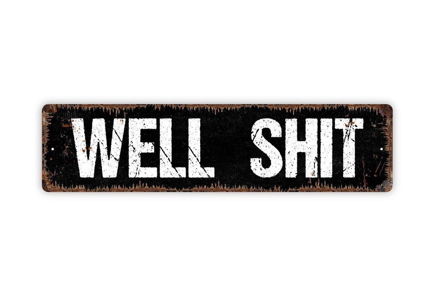 Well Shit Sign - Vinyl Sticker Or Street Metal Sign or Door Name Plate Plaque