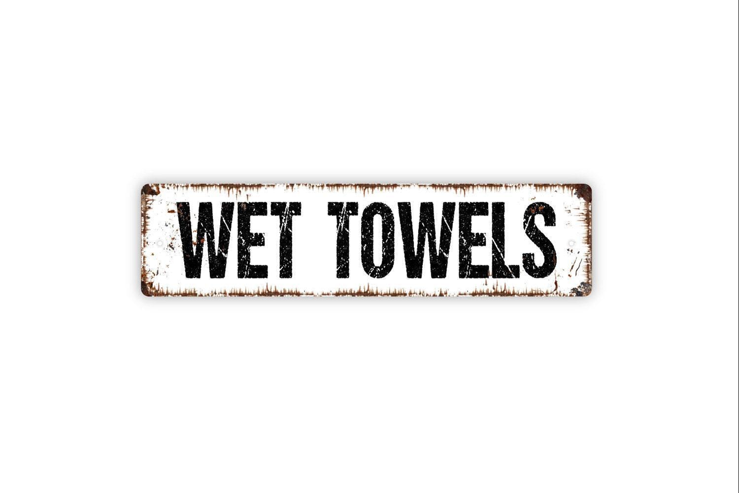 Wet Towels Sign - Swimming Pool Shower Bathroom Beach Vinyl Sticker Or Metal Street Sign or Door Name Plate Plaque