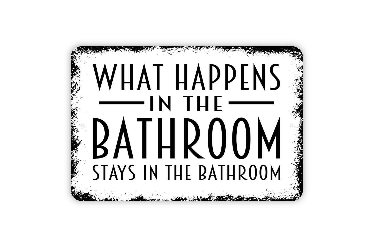 What Happens In The Bathroom Stays In The Bathroom Sign, Funny Guest Bath Farmhouse Metal Sign, Contemporary Modern Wall Metal Sign