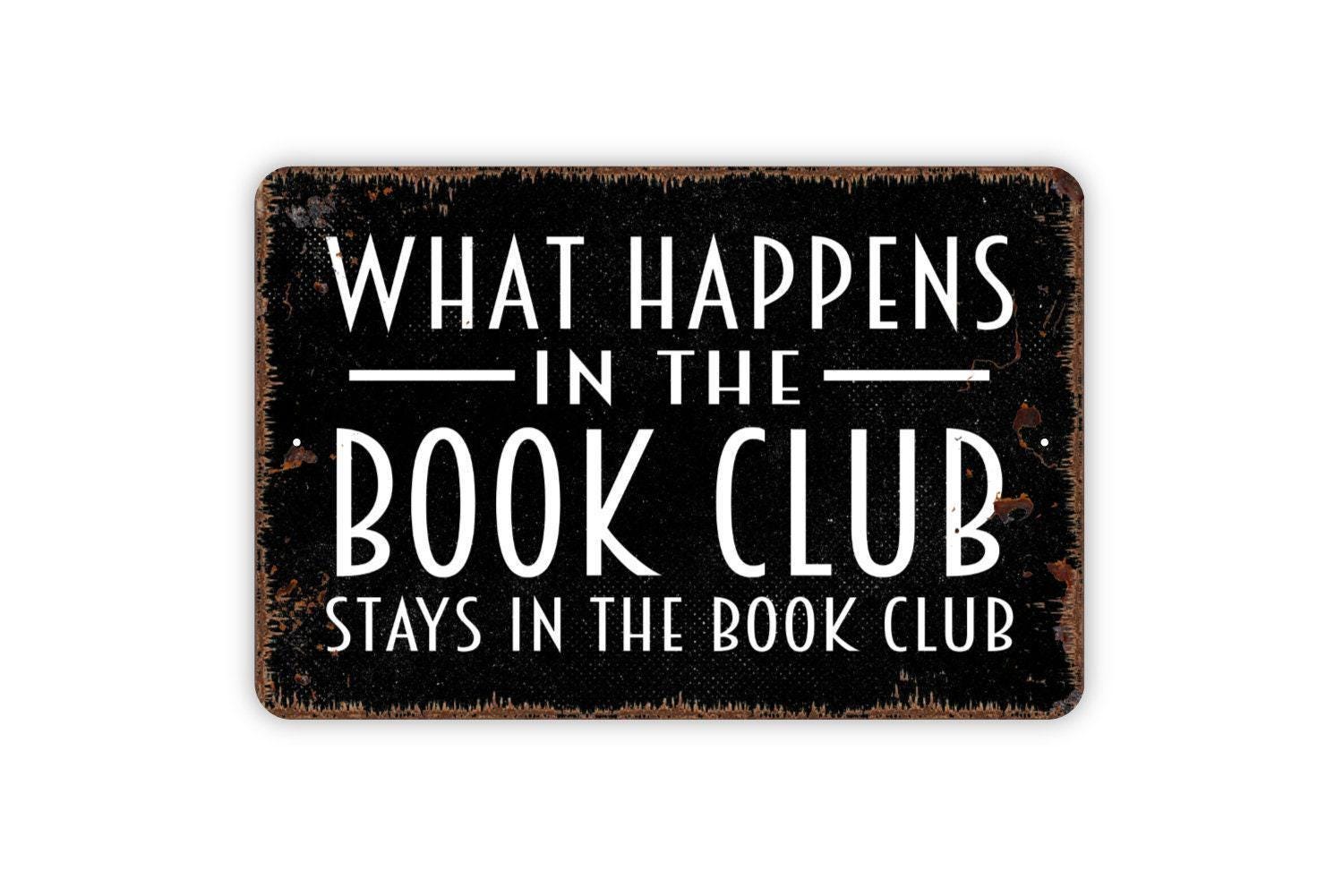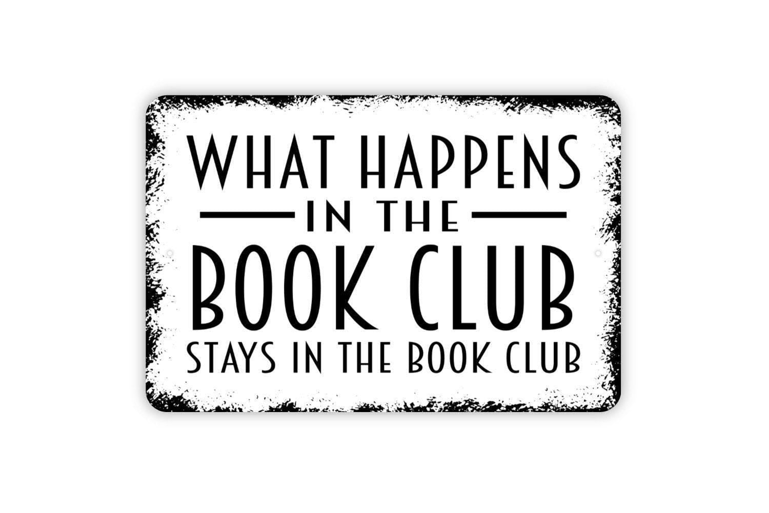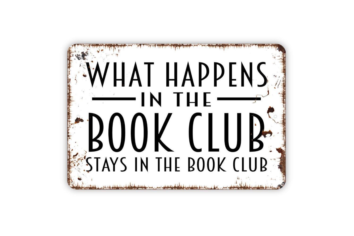 What Happens In The Book Club Stays In The Book Club Sign - Funny Library Metal Wall Art