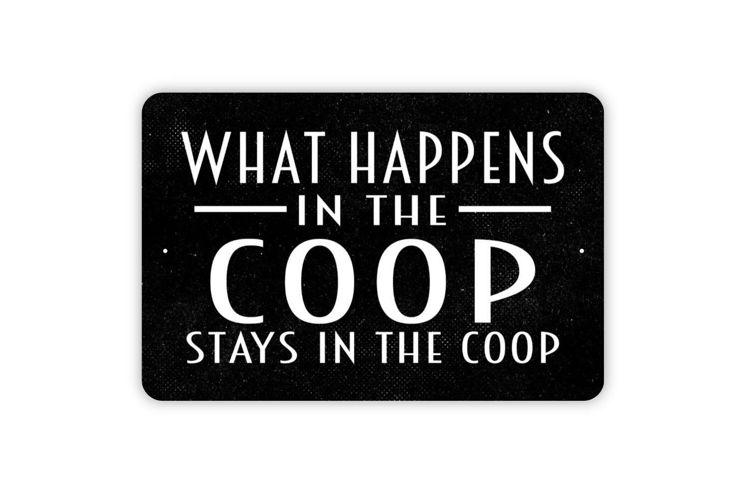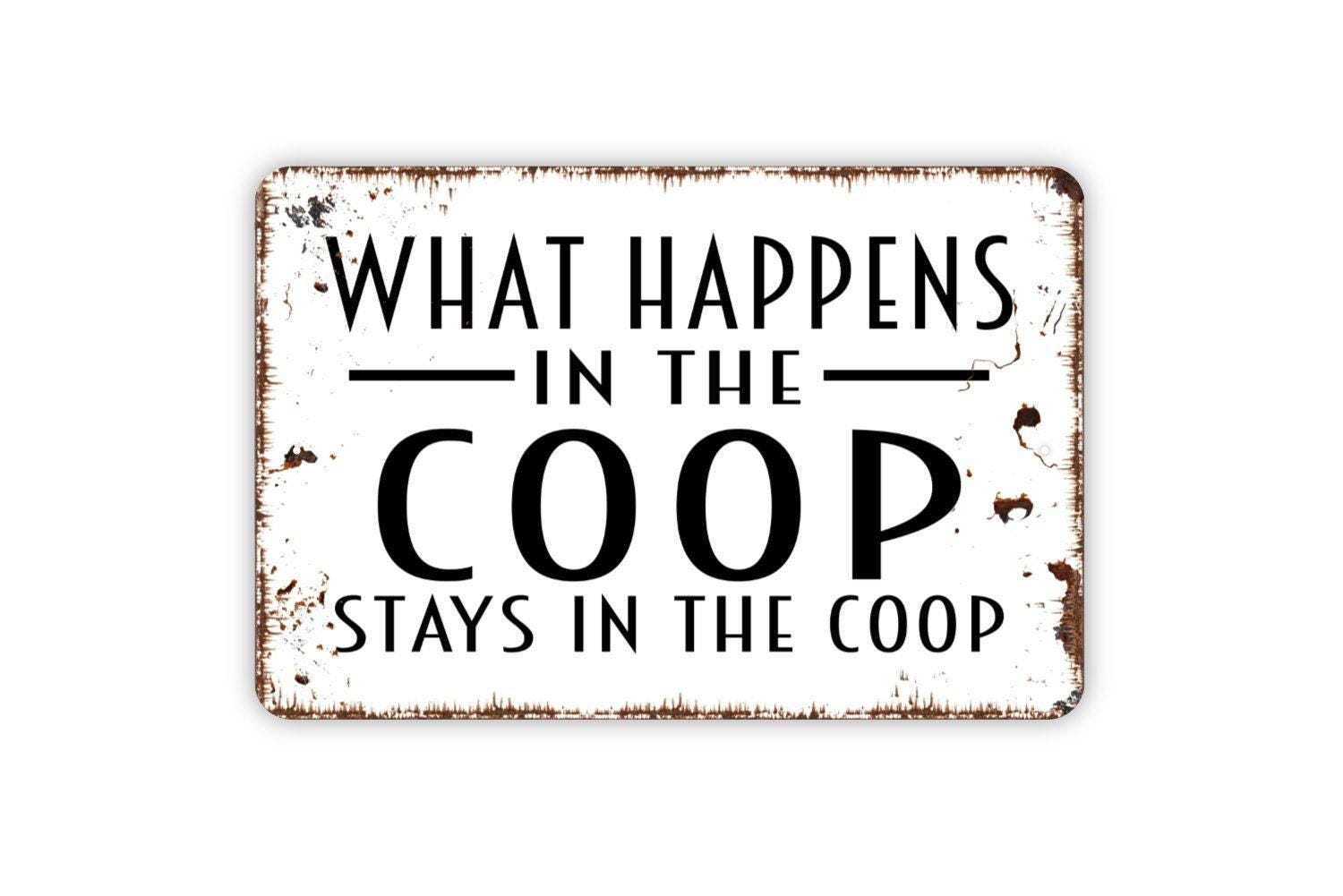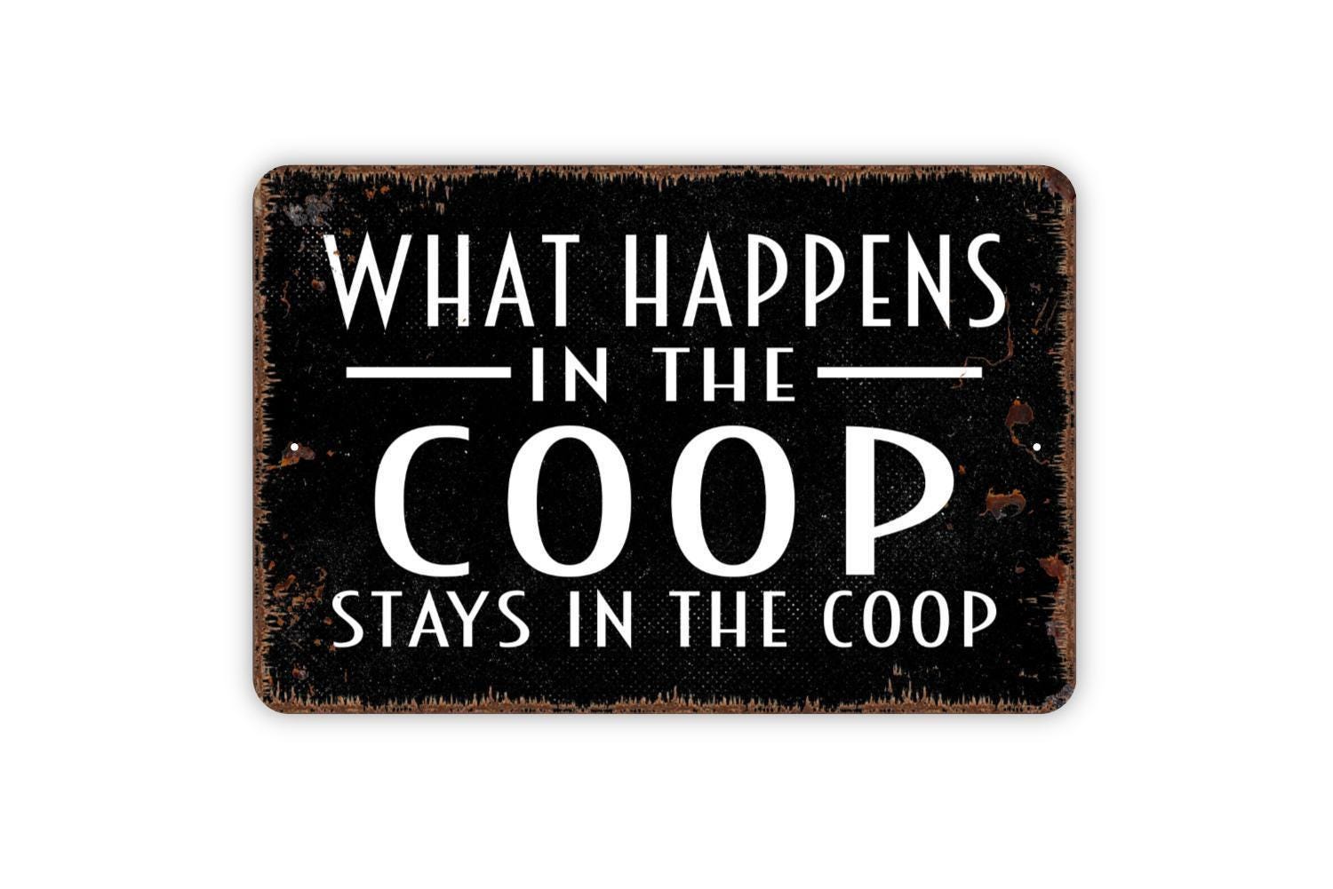 What Happens In The Coop Stays In The Coop Sign - Metal Indoor or Outdoor Wall Art