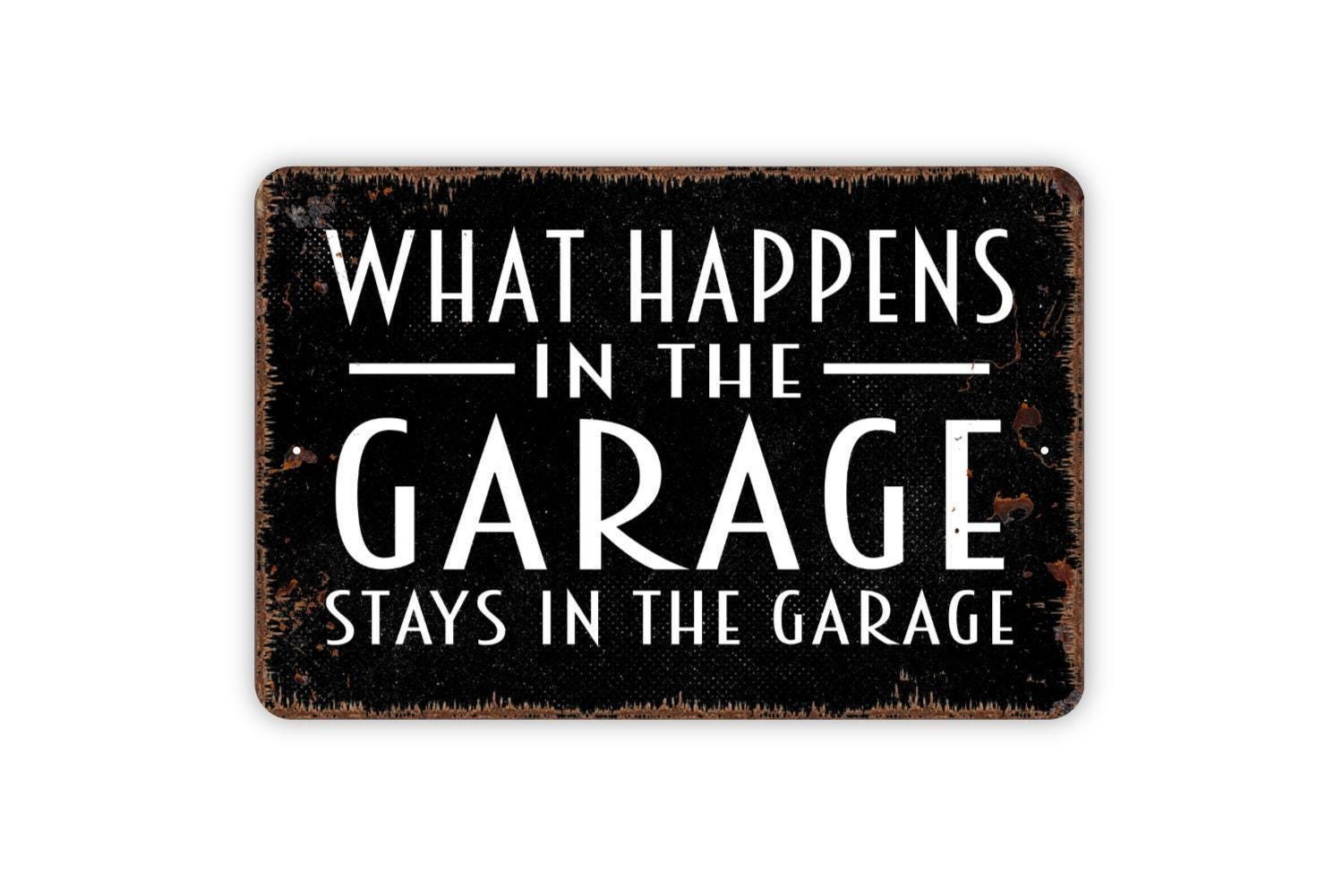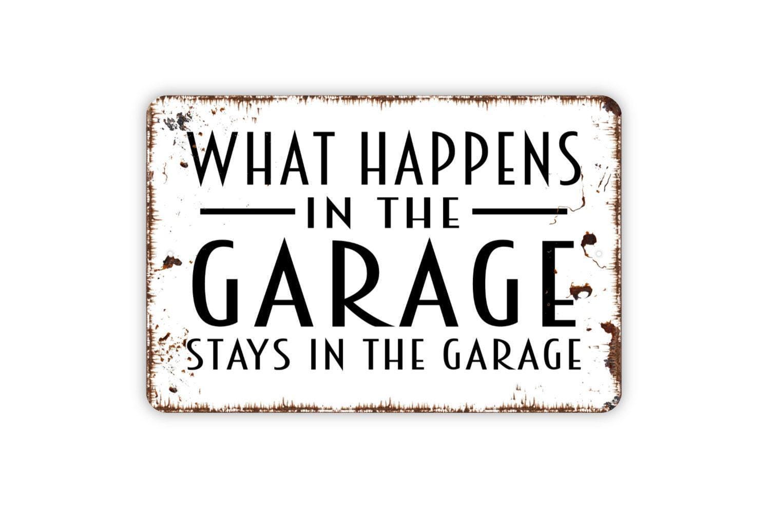What Happens In The Garage Stays In The Garage Metal Sign, Custom Home Sign, Farmhouse Style Wall Decor Modern Wall Metal Sign