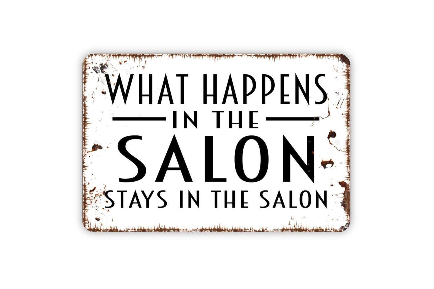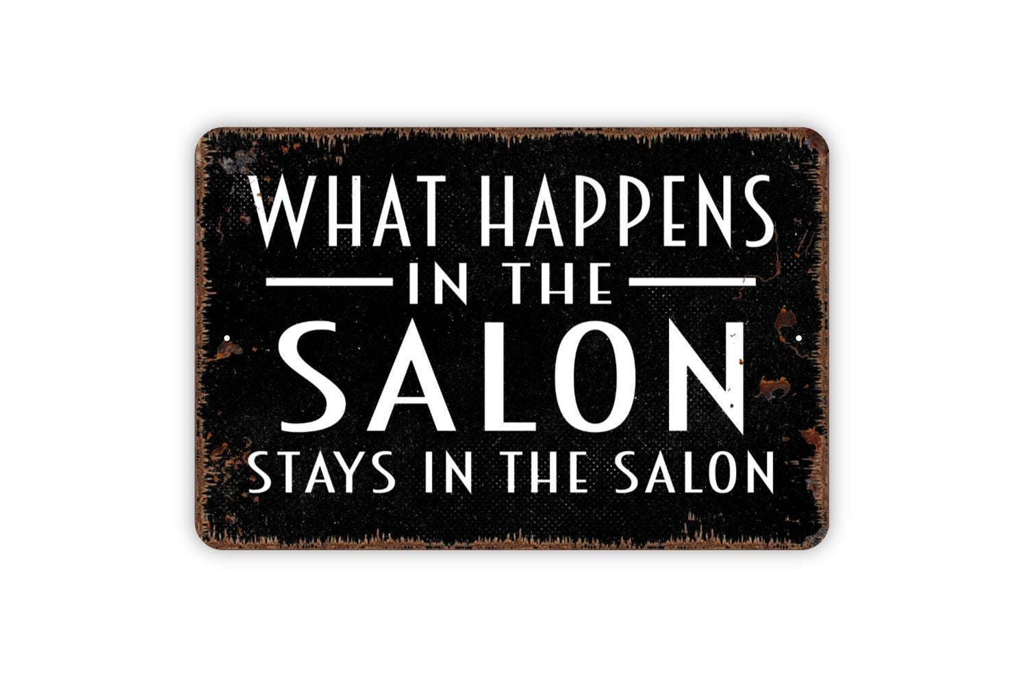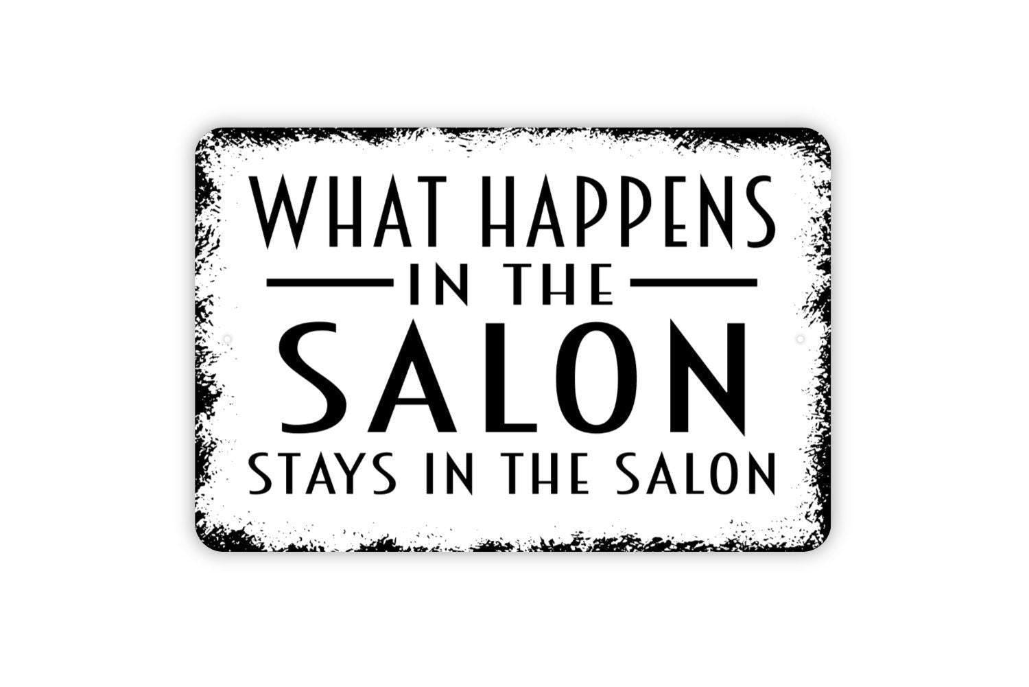 What Happens In The Salon Stays In The Salon Sign - Beauty Hair Salon Metal Indoor or Outdoor Wall Art