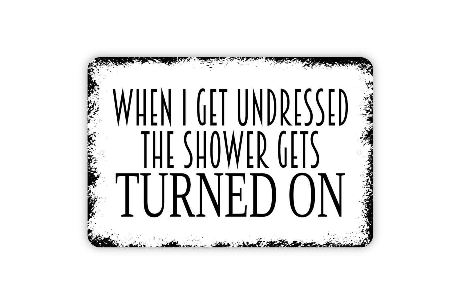 When I Get Undressed The Shower Gets Turned On Sign - Bathroom Funny Metal Indoor or Outdoor Wall Art