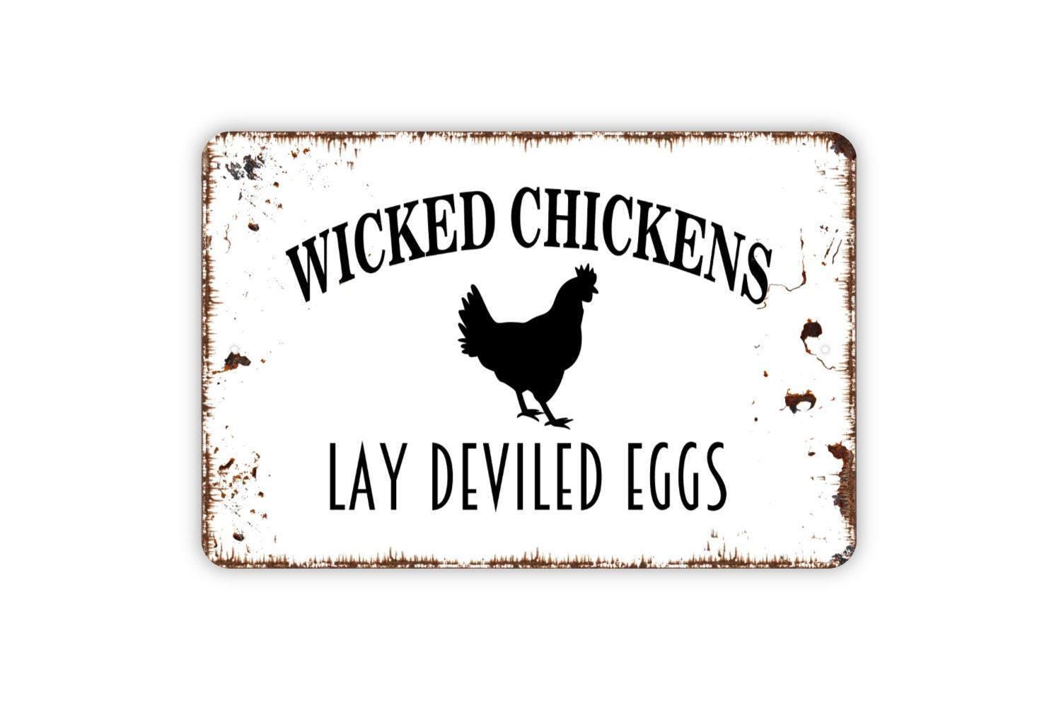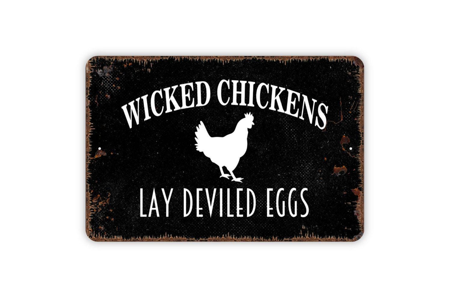 Wicked Chickens Lay Deviled Eggs Sign - Funny Hen Farm Metal Indoor or Outdoor Metal Sign