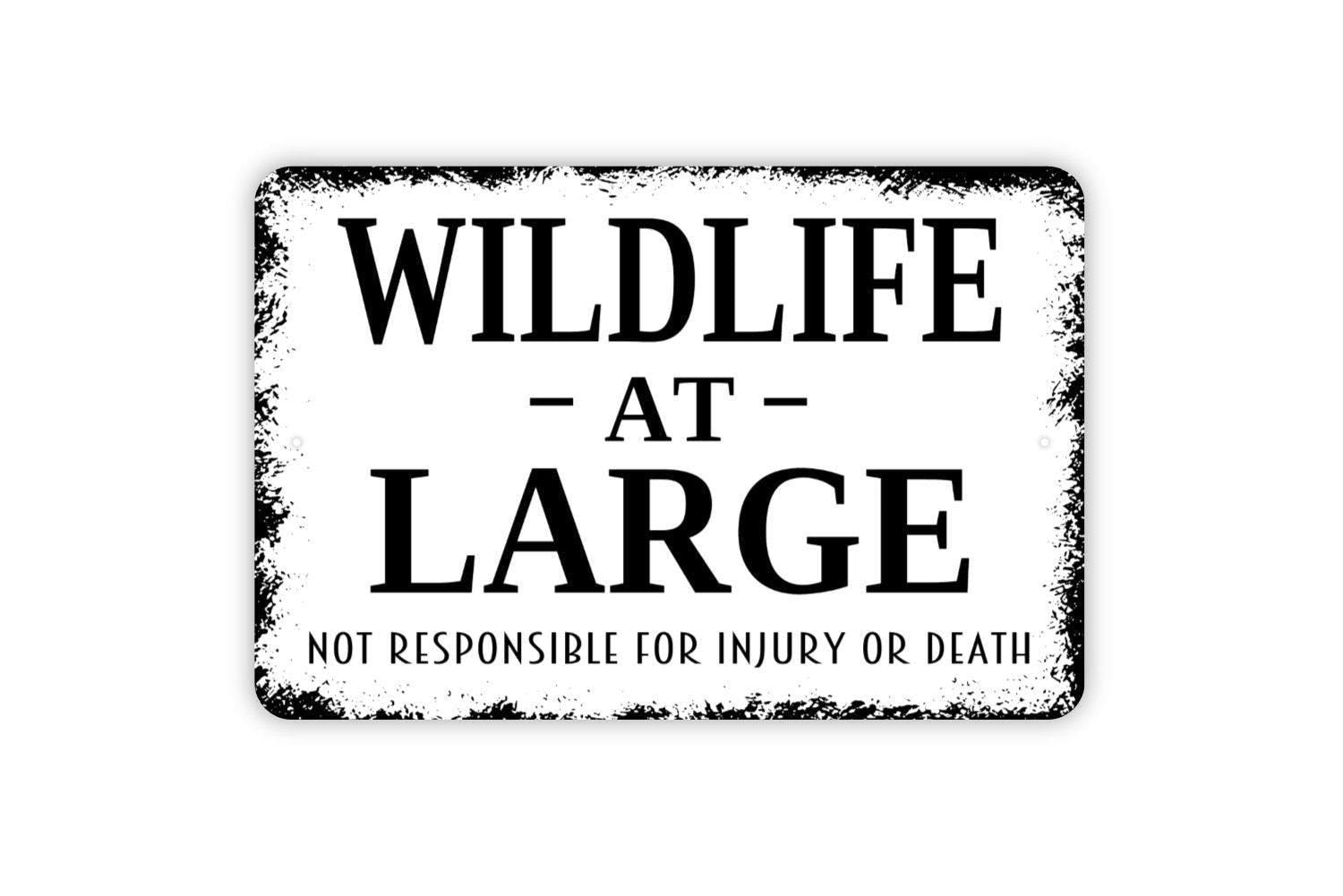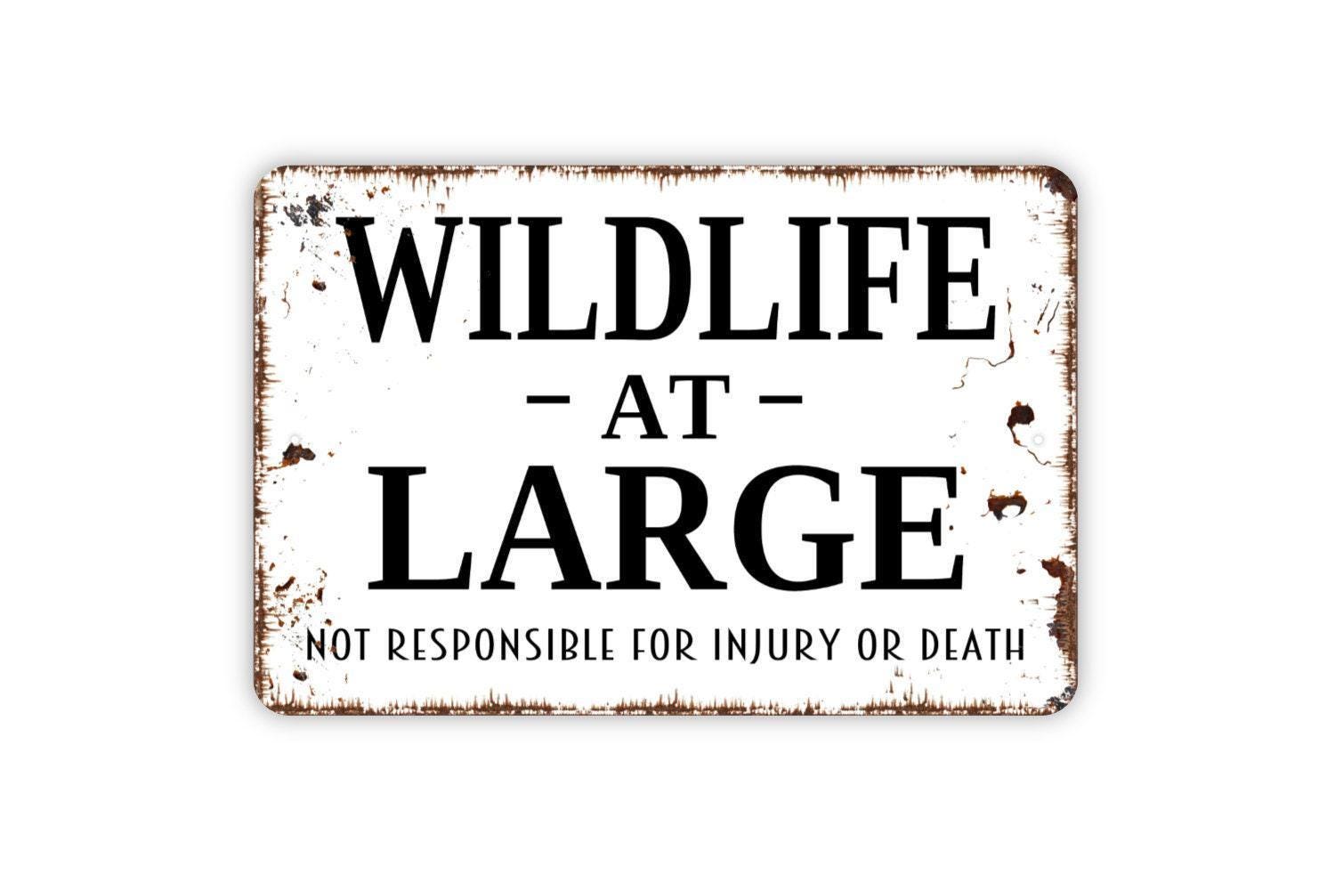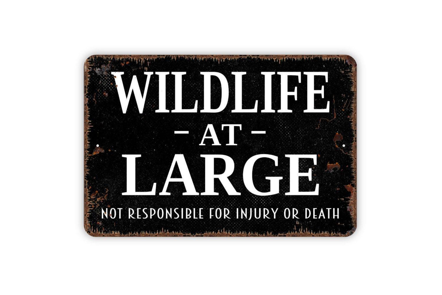 Wildlife At Large Sign - Caution Danger Animals Metal Art