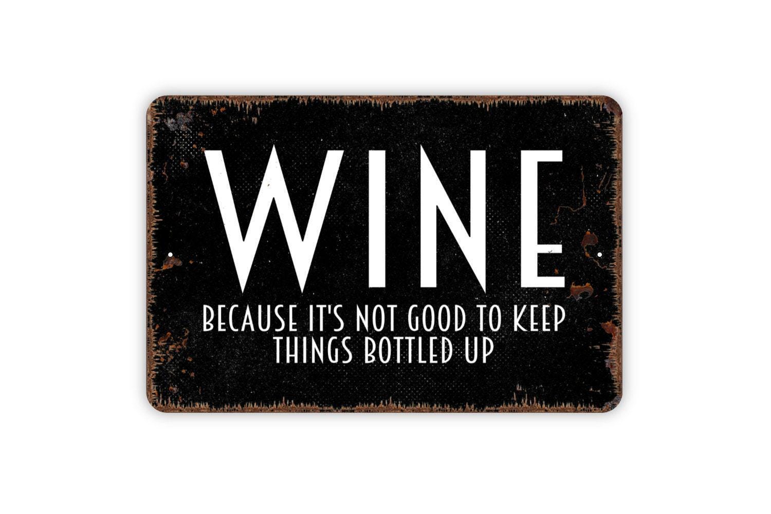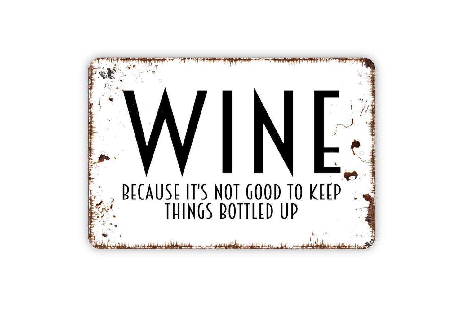 Wine Because Its Not Good To Keep Things Bottled Up Sign, Metal Sign, Farmhouse Contemporary Modern Wall Metal Sign