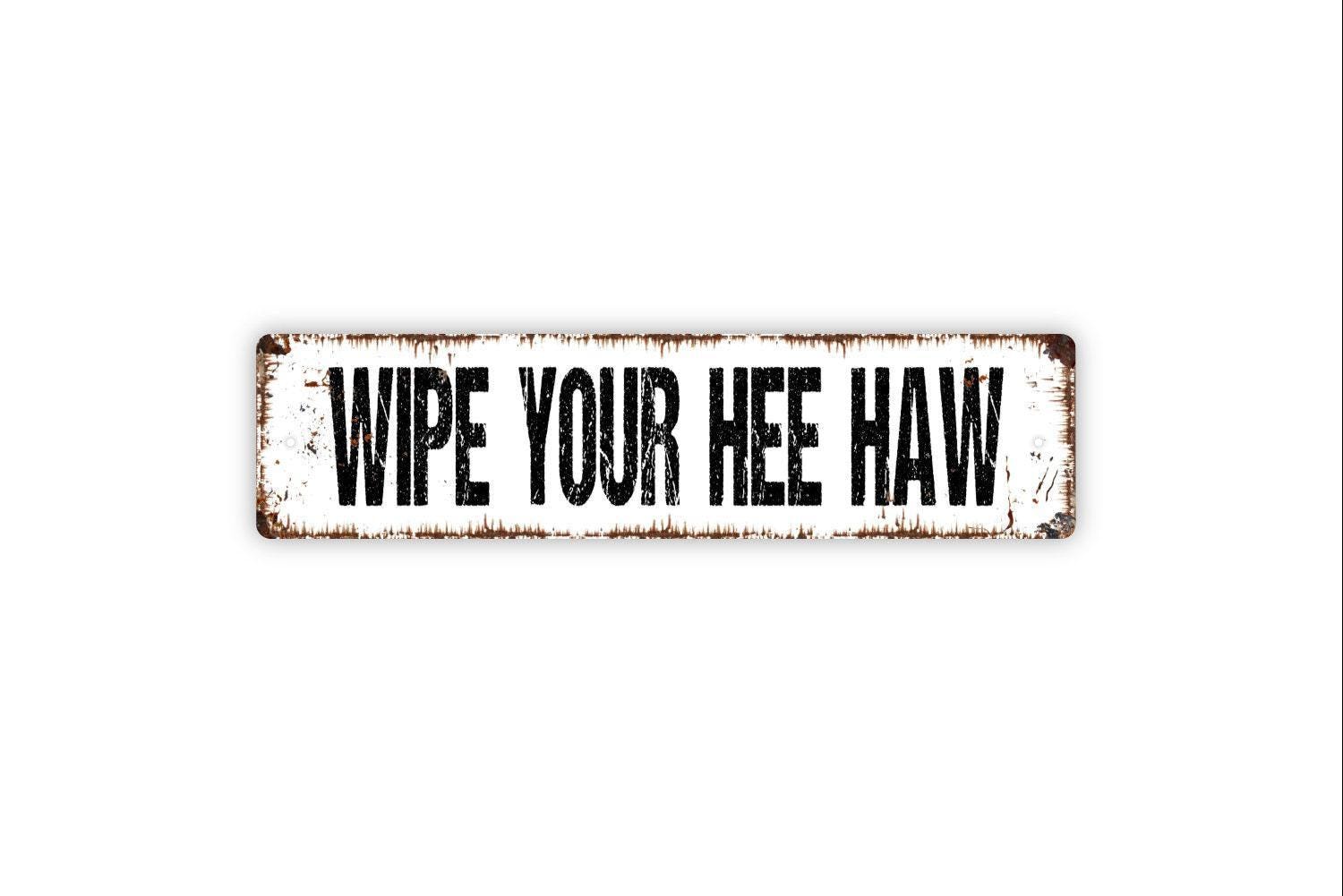Wipe Your Hee Haw Sign Metal or Vinyl Sticker | Funny Farmhouse Bathroom Sign | Rustic Outhouse Decor | Country Humor Wall Art | Barn Sign