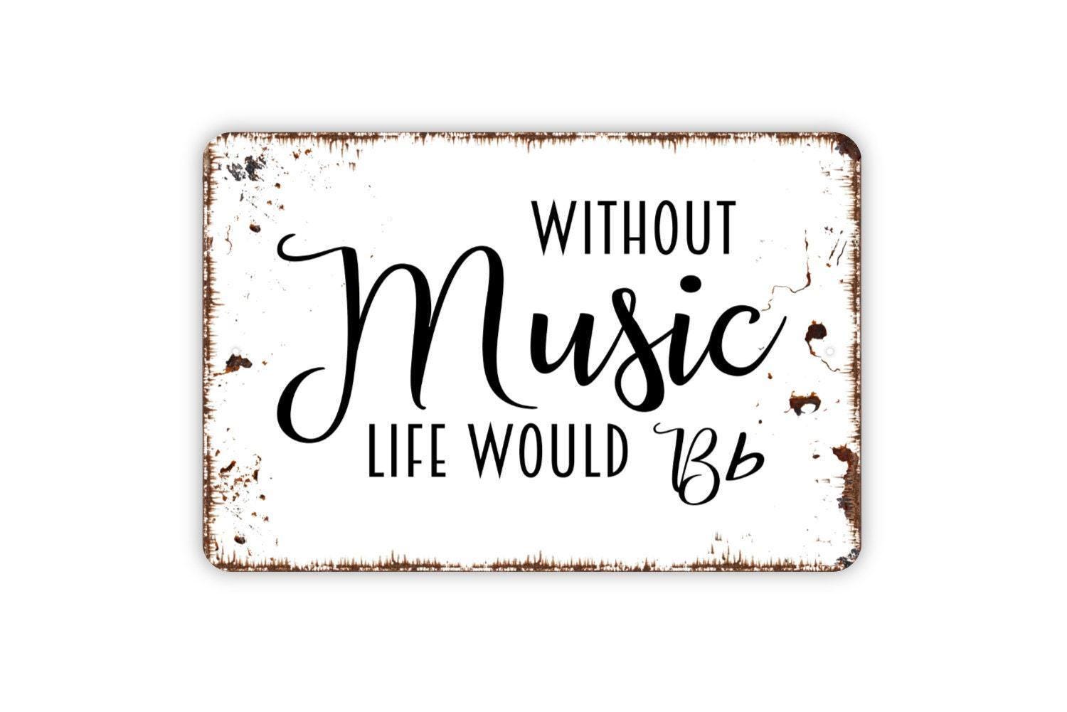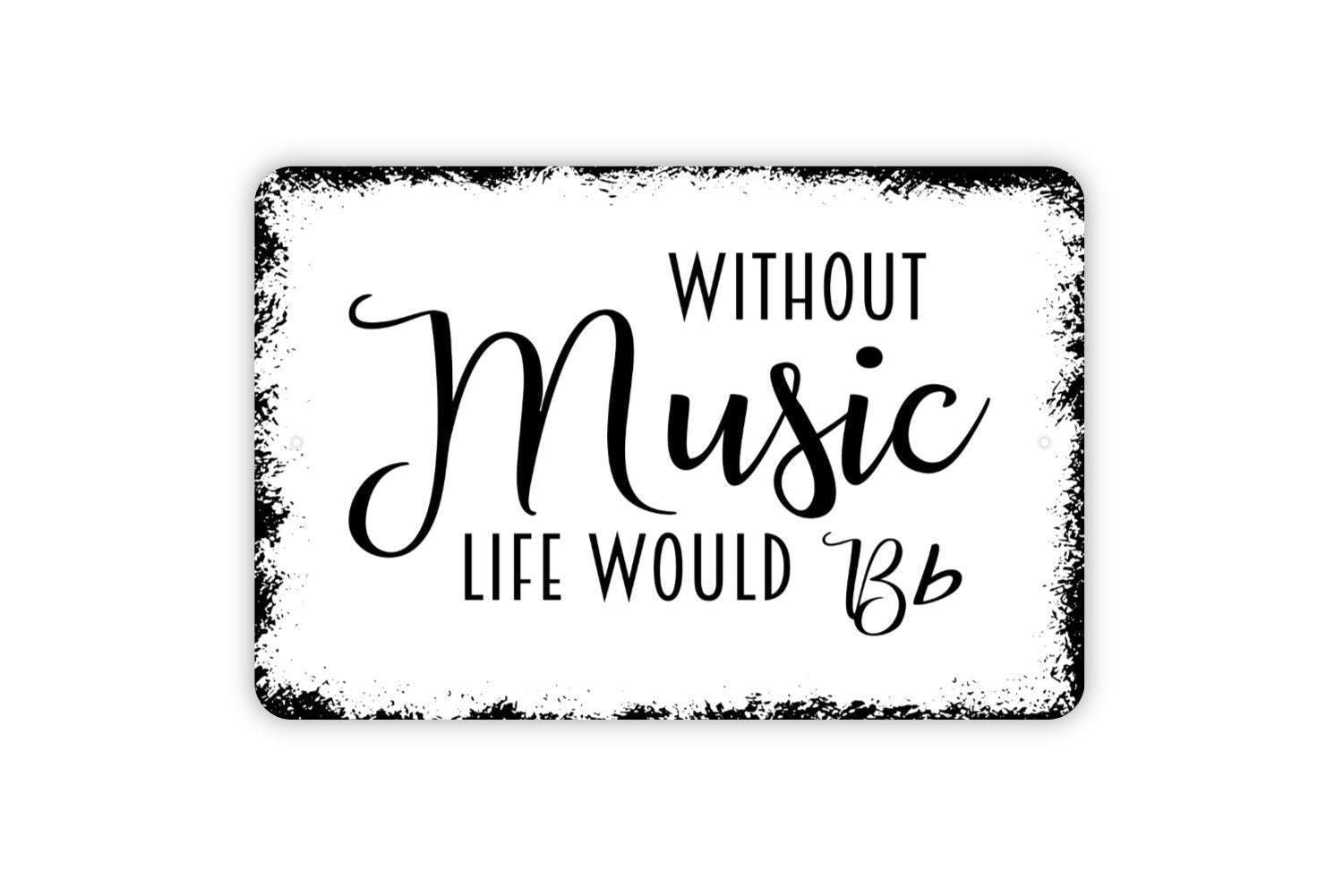 Without Music Life Would Be Flat Sign | Funny Music Sign | Metal Wall Sign | Vinyl Sticker | Music Lover Gift | Band Room Decor | Rustic