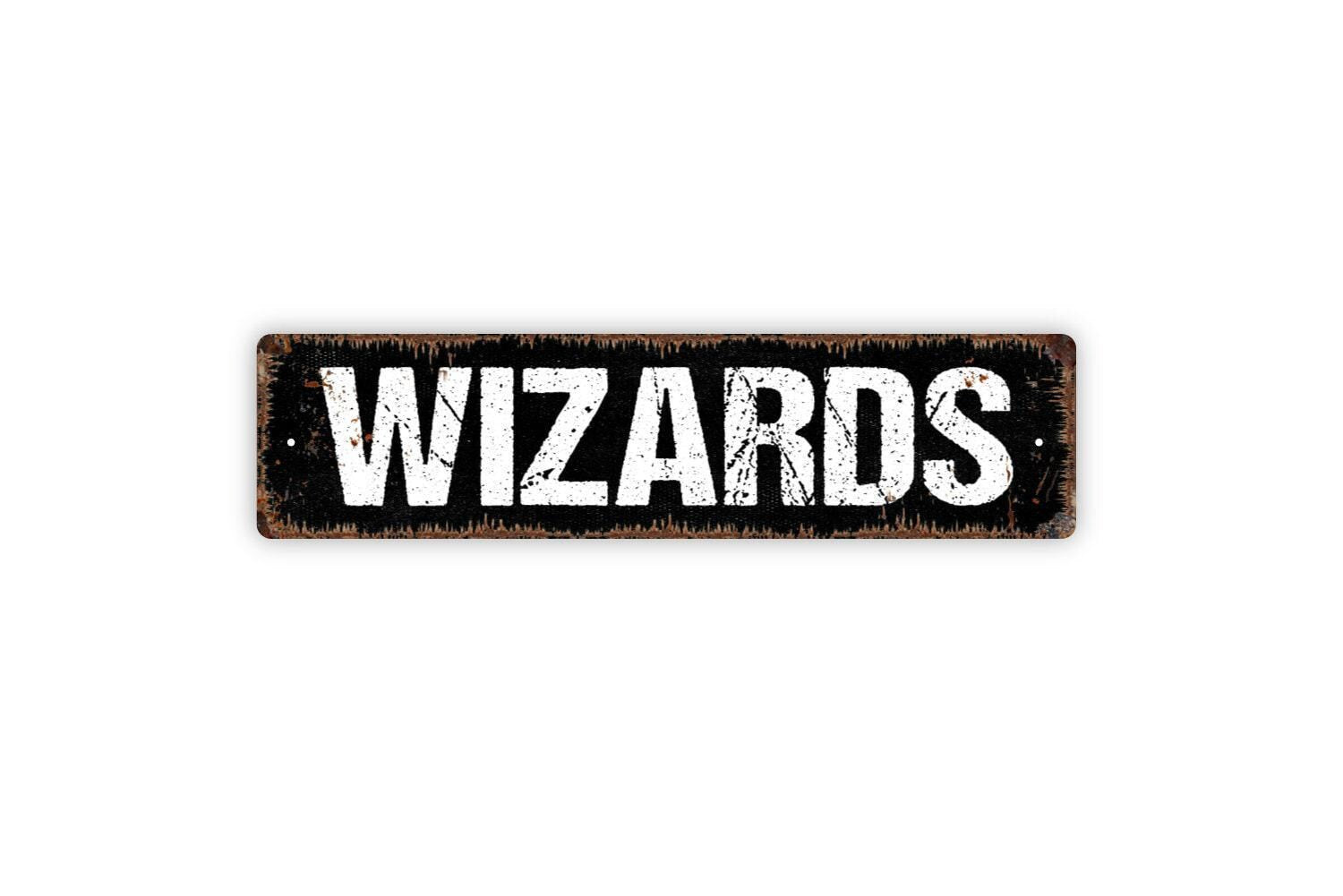 Wizards Sign - Vinyl Sticker Or Metal Street Sign or Door Name Plate Plaque