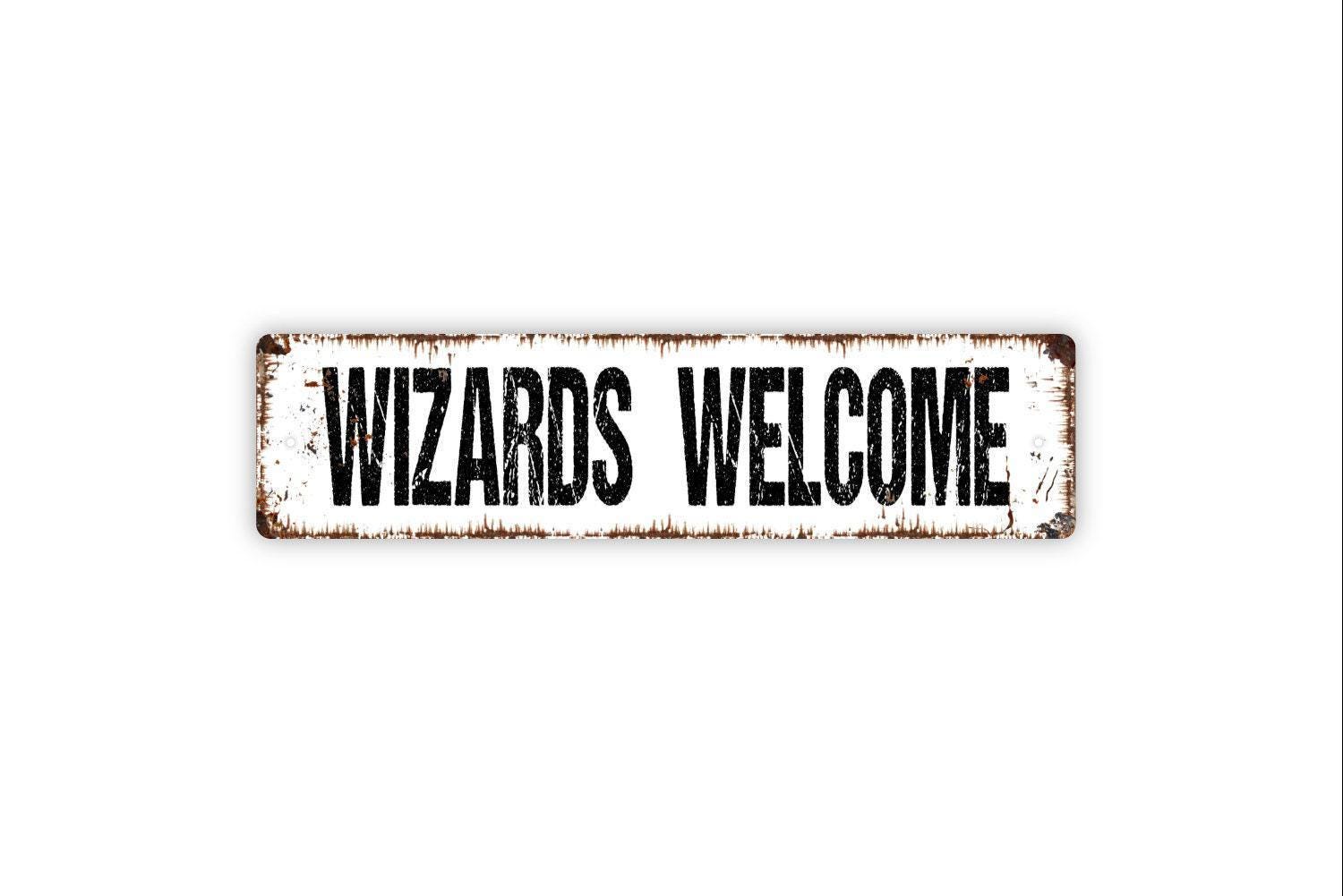 Wizards Welcome Sign | Rustic Fantasy Wall Decor | Magic Castle or Tavern Sign | Custom Metal Sign or Vinyl Sticker | Witch Wizard Wall Art