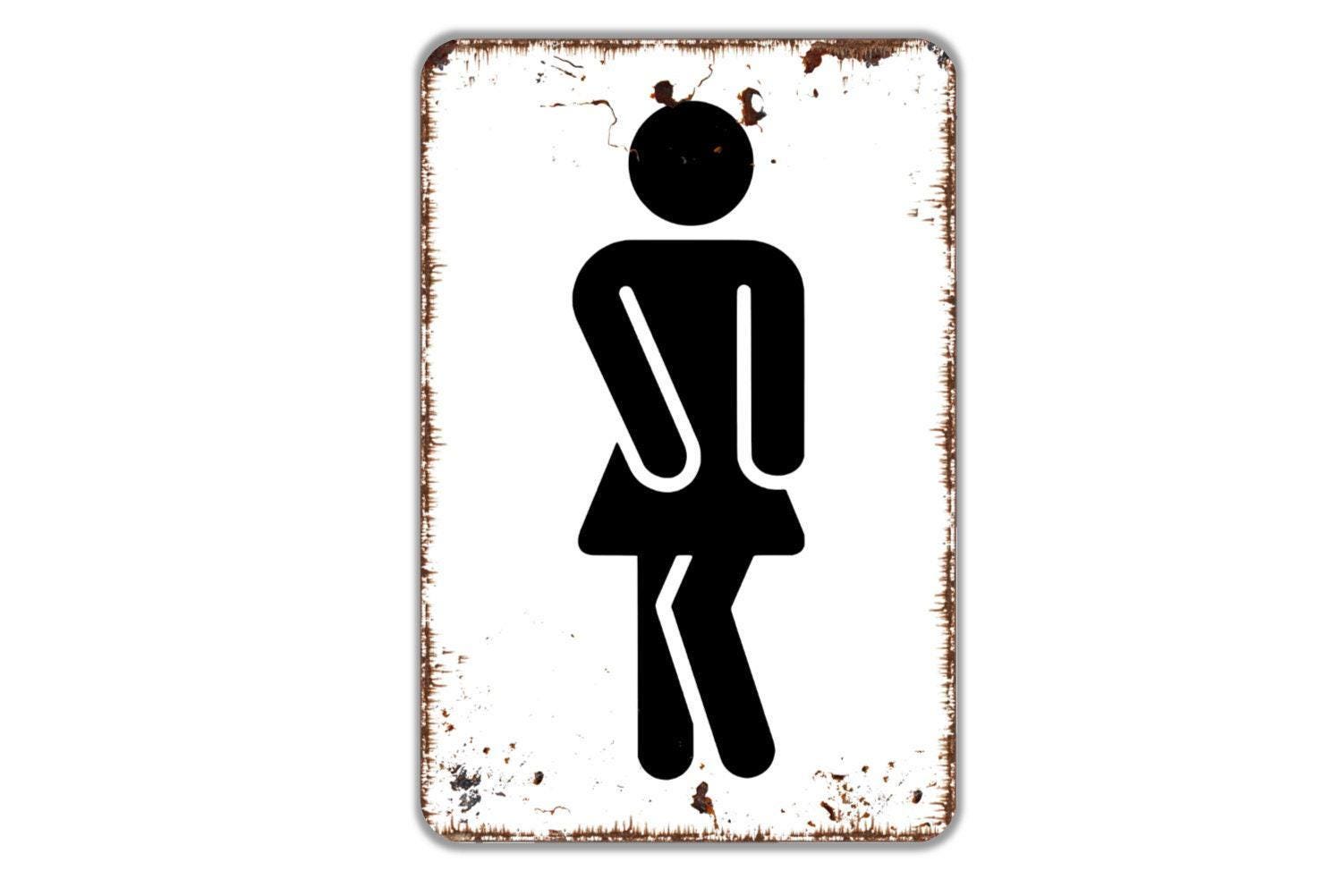 Woman With Crossed Legs Funny Bathroom Sign, Womens Restroom Metal Sign, Farmhouse Wall Decor Modern Wall Metal Sign