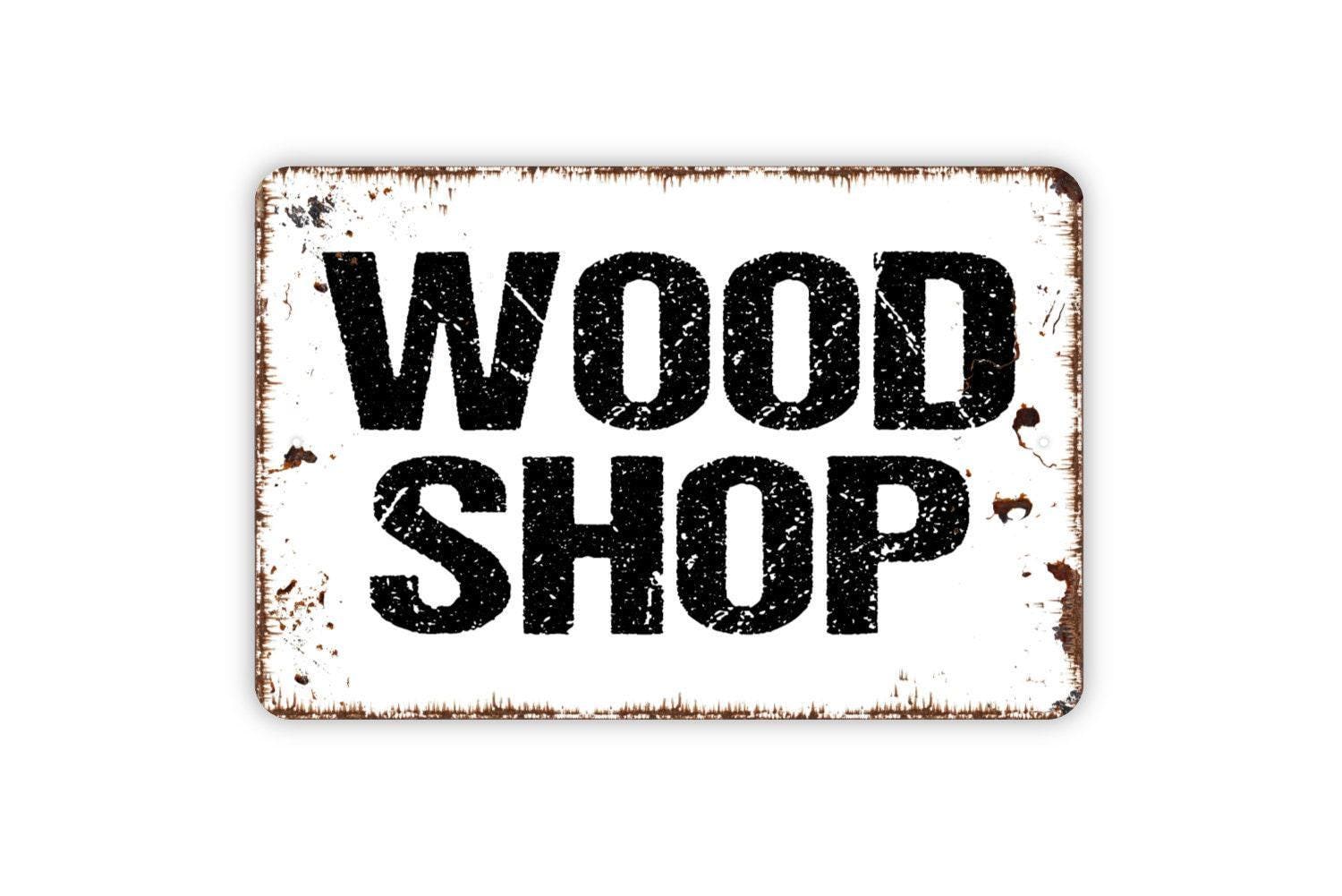 Wood Shop Sign | Rustic Workshop Wall Decor | Carpenter or Garage Wall Art | Custom Metal Sign or Vinyl Sticker | DIY Craft Room Sign