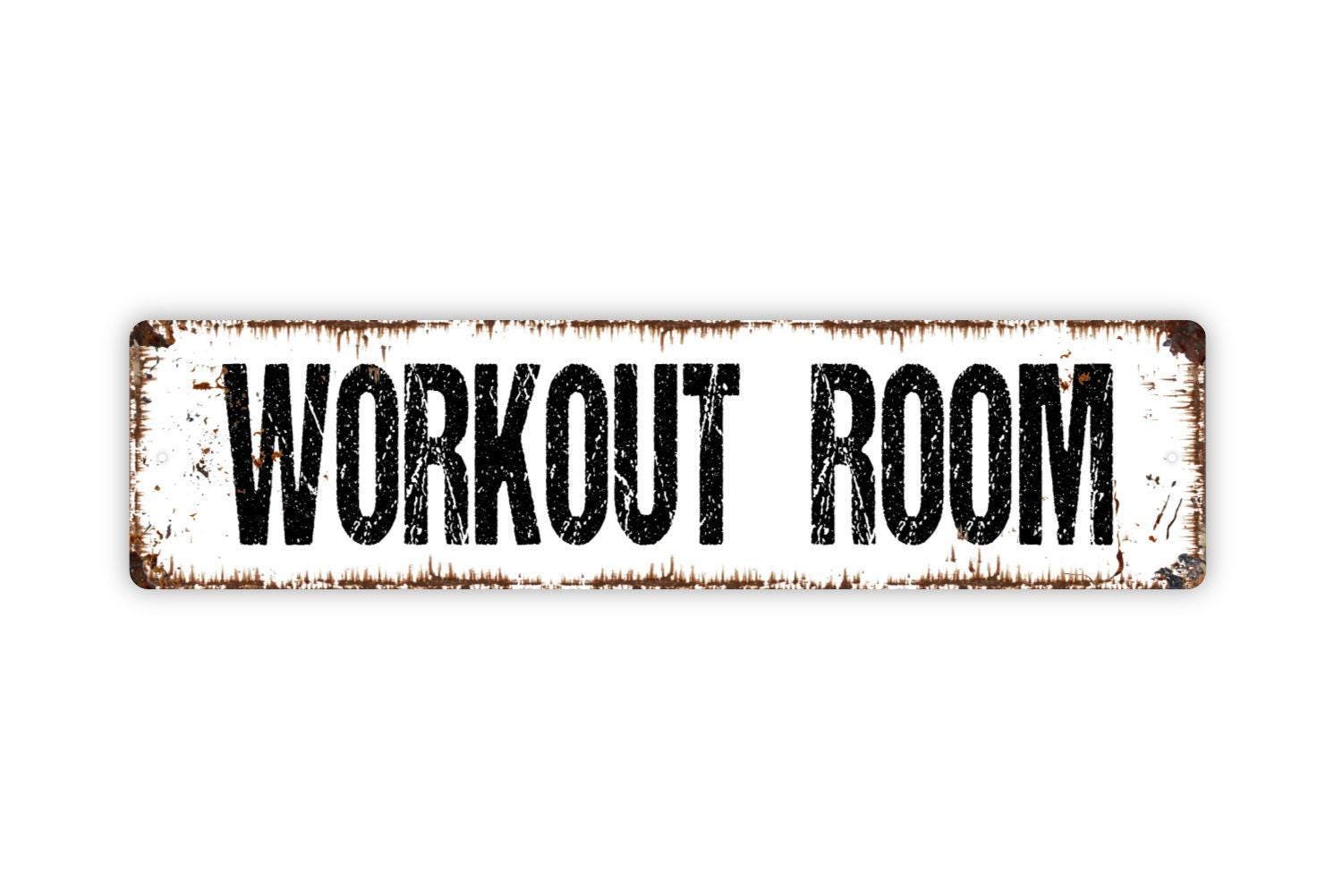 Workout Room Sign | Home Gym Fitness Wall Decor | Metal Sign or Vinyl Sticker for Exercise Room Garage Basement Studio