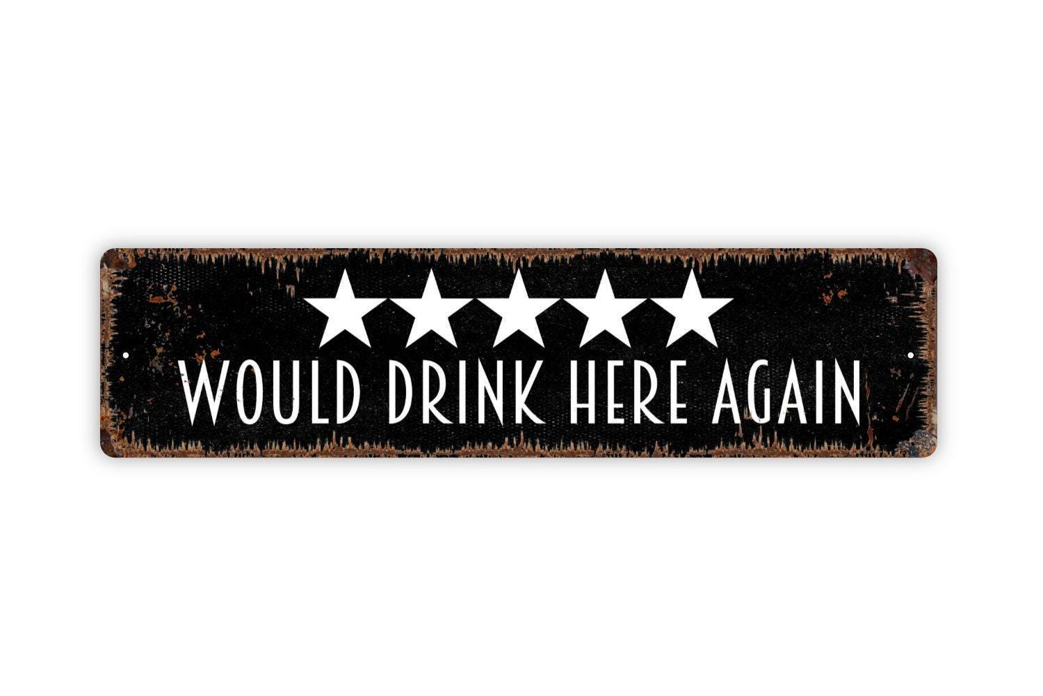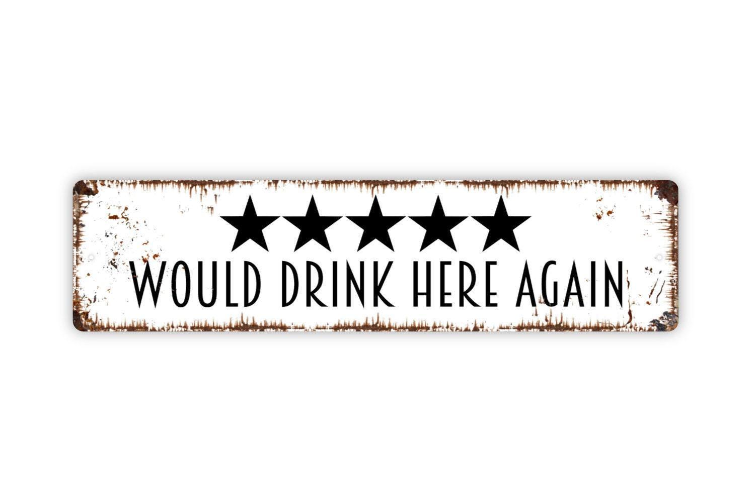 Would Drink Here Again Five Stars Sign - Bar Pub Man Cave Vinyl Sticker Or Metal Street Sign or Door Name Plate Plaque