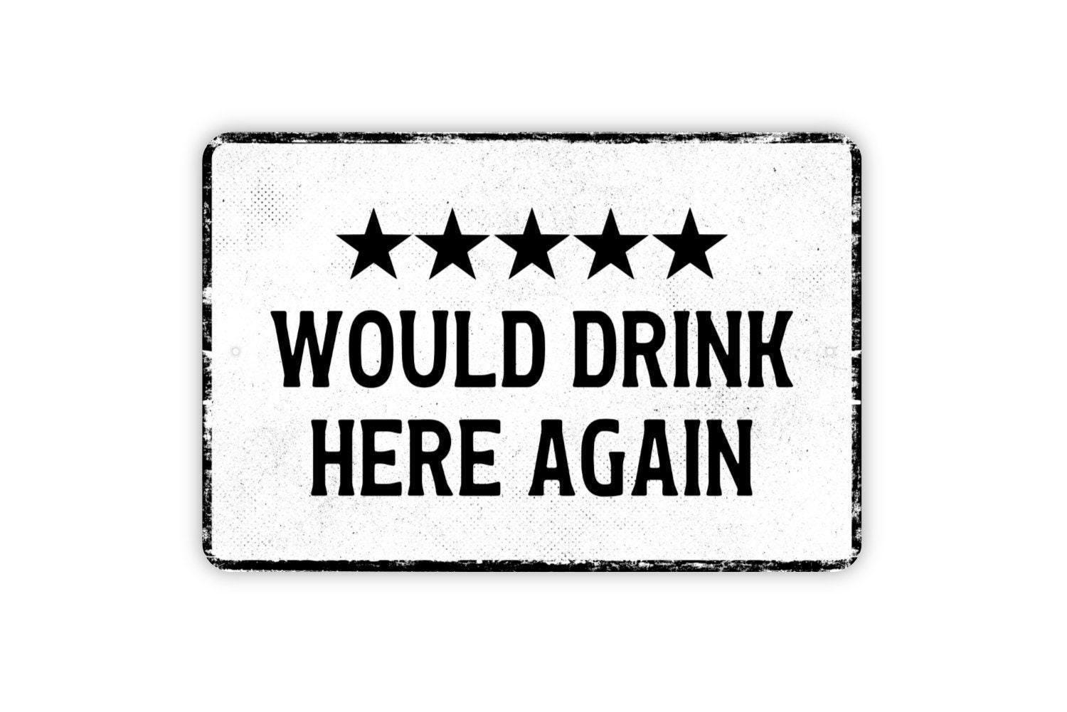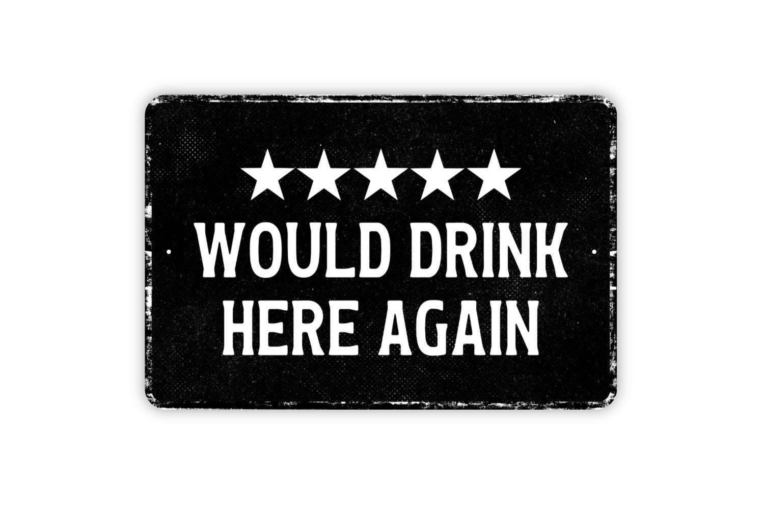 Would Drink Here Again Sign Funny Metal Wall Art or Vinyl Sticker for Bar, Pub, Patio, Kitchen, Home Bar, Drinking Party Humor Decor