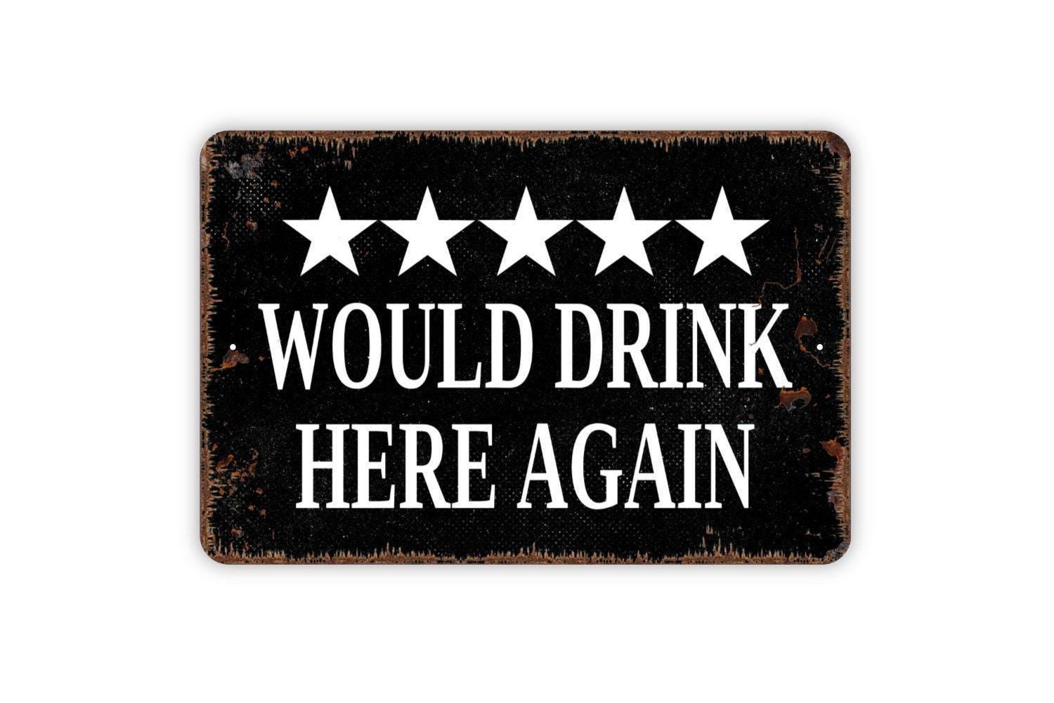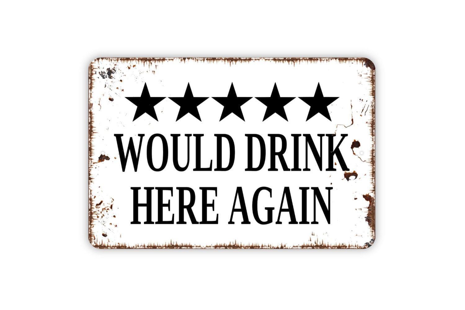 Would Drink Here Again With Five Stars Rating Sign - Funny Kitchen Bar Metal Indoor or Outdoor Wall Art
