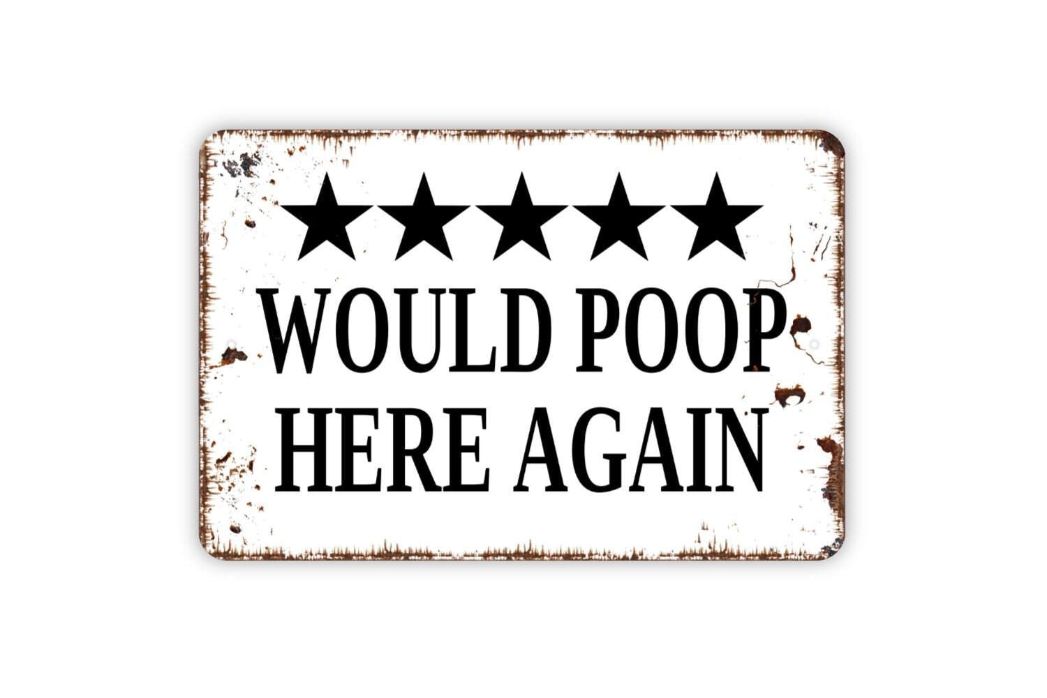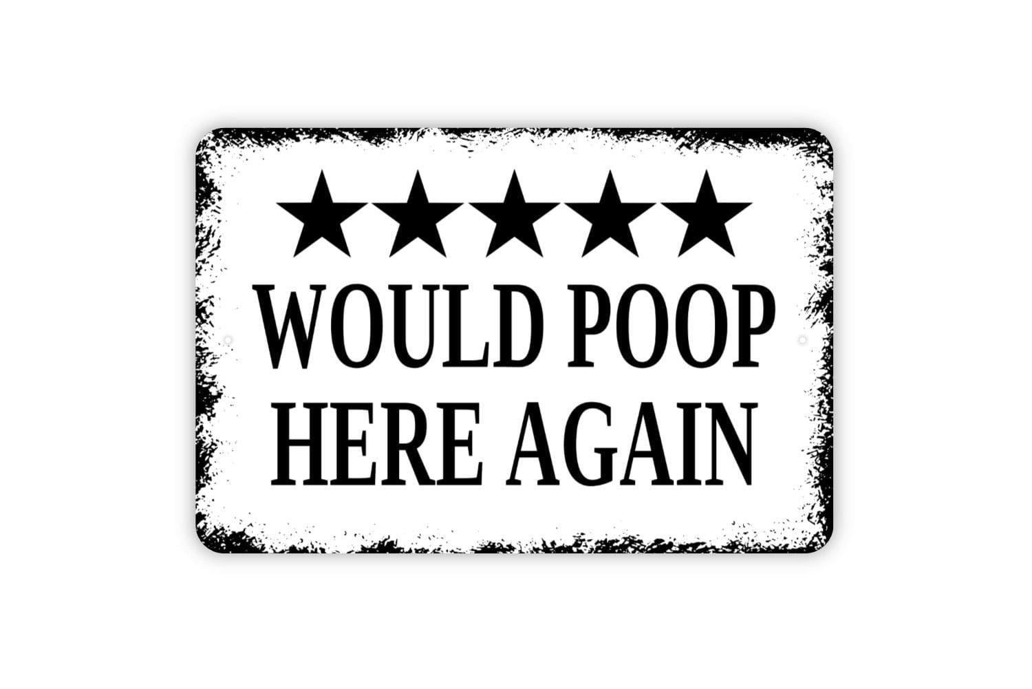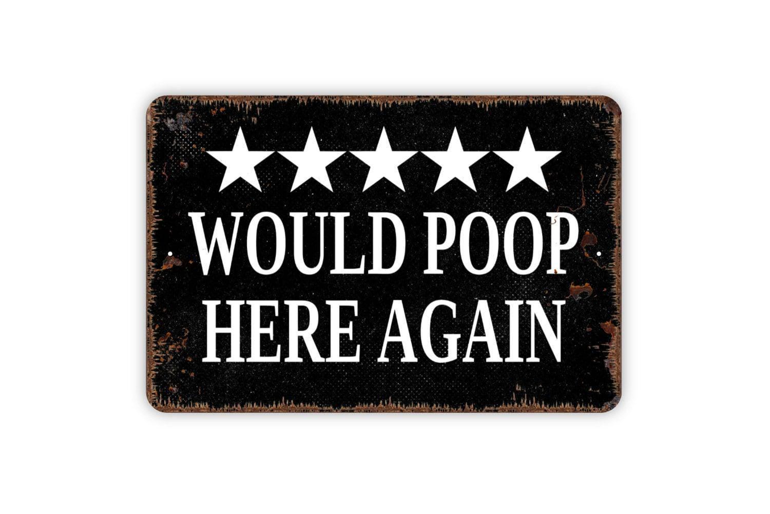 Would Poop Here Again With Five Star Rating Sign - Funny Bathroom Metal Wall Art