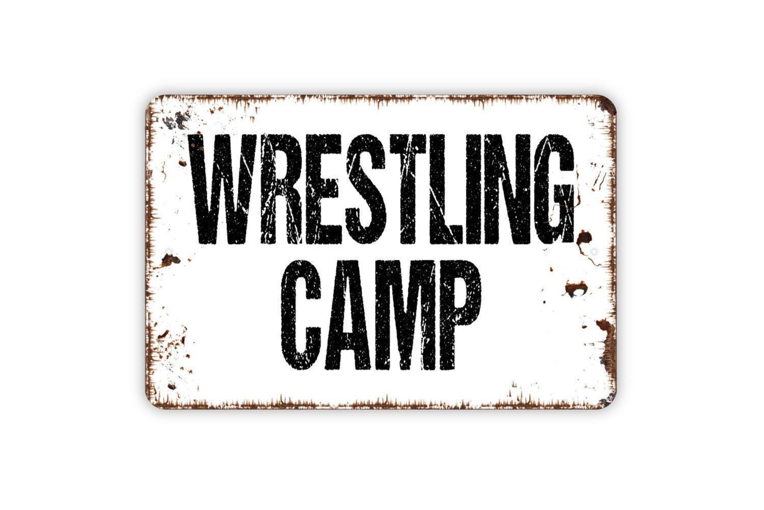Wrestling Camp Sign | Metal Wall Sign or Vinyl Sticker | Sports Room, Gym, Training Center, or Bedroom Decor | Multiple Size Options