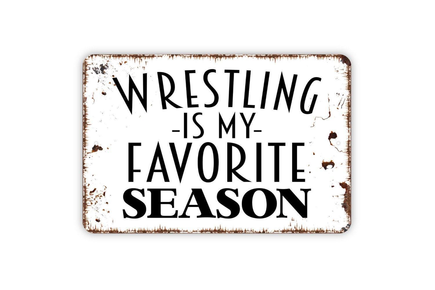 Wrestling Is My Favorite Season Sign, Funny Metal Sign, Farmhouse Contemporary Modern Wall Metal Sign